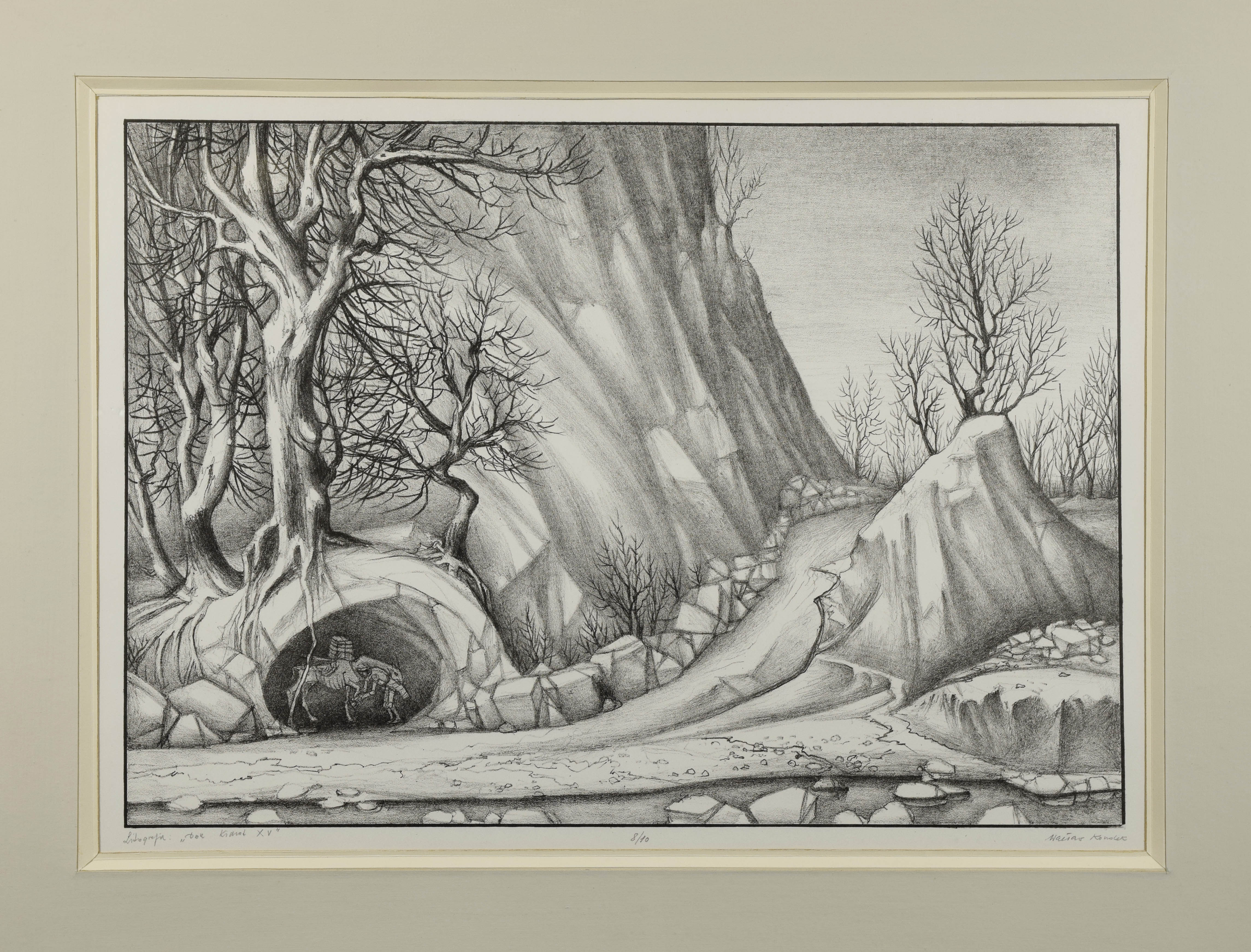 litografia, papier; 39,5 x 56 cm (wymiar odbitki), 42,5 x 58,5 cm (wymiar arkusza;sygn. p. d.: Wacław Kondek (ołówkiem); tytuł l. d.: Litografia "Don Kichot XV" (ołówkiem).