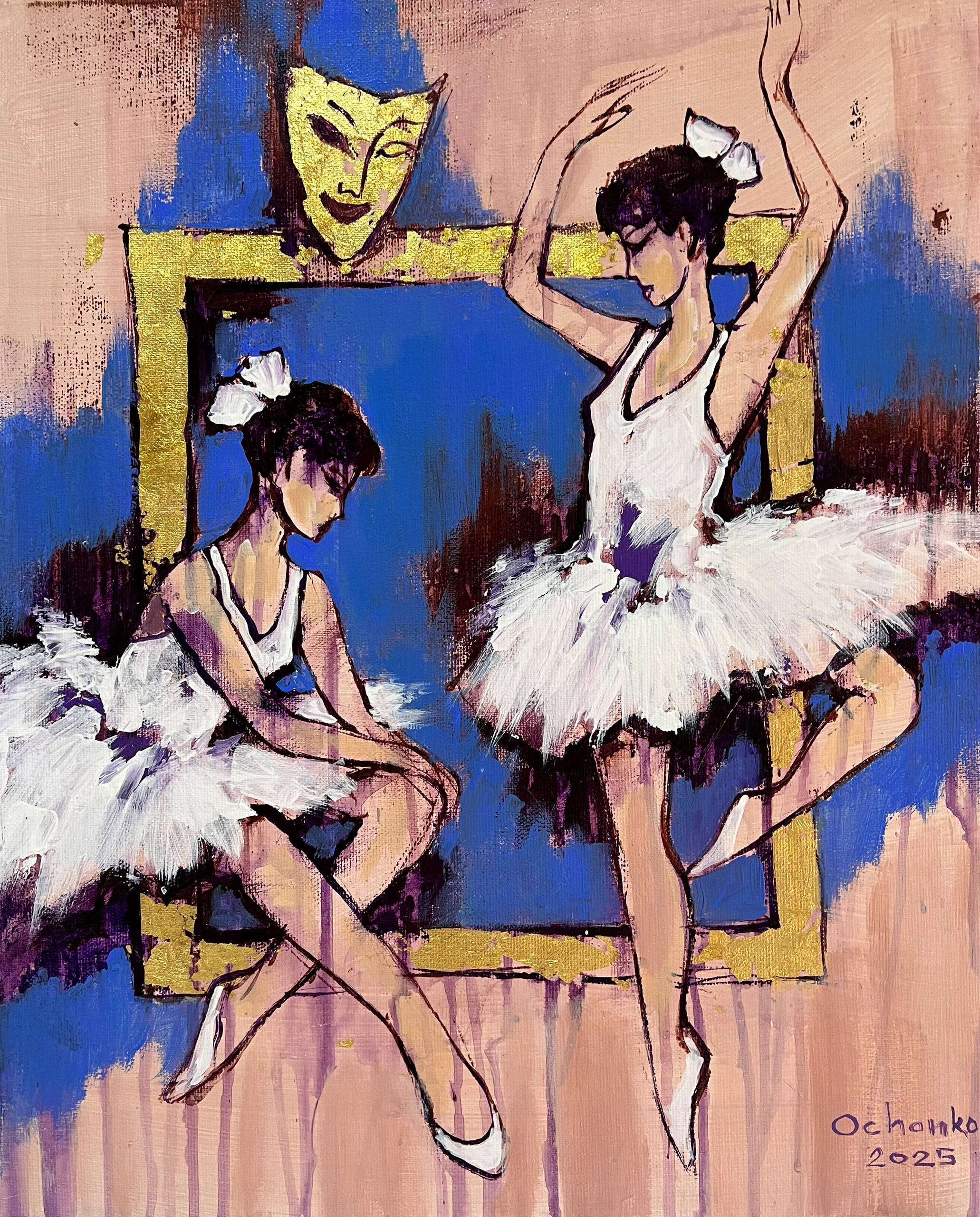 technika własna, szlagmetal, akryl, olej, płótno, 50 x 40 cm
