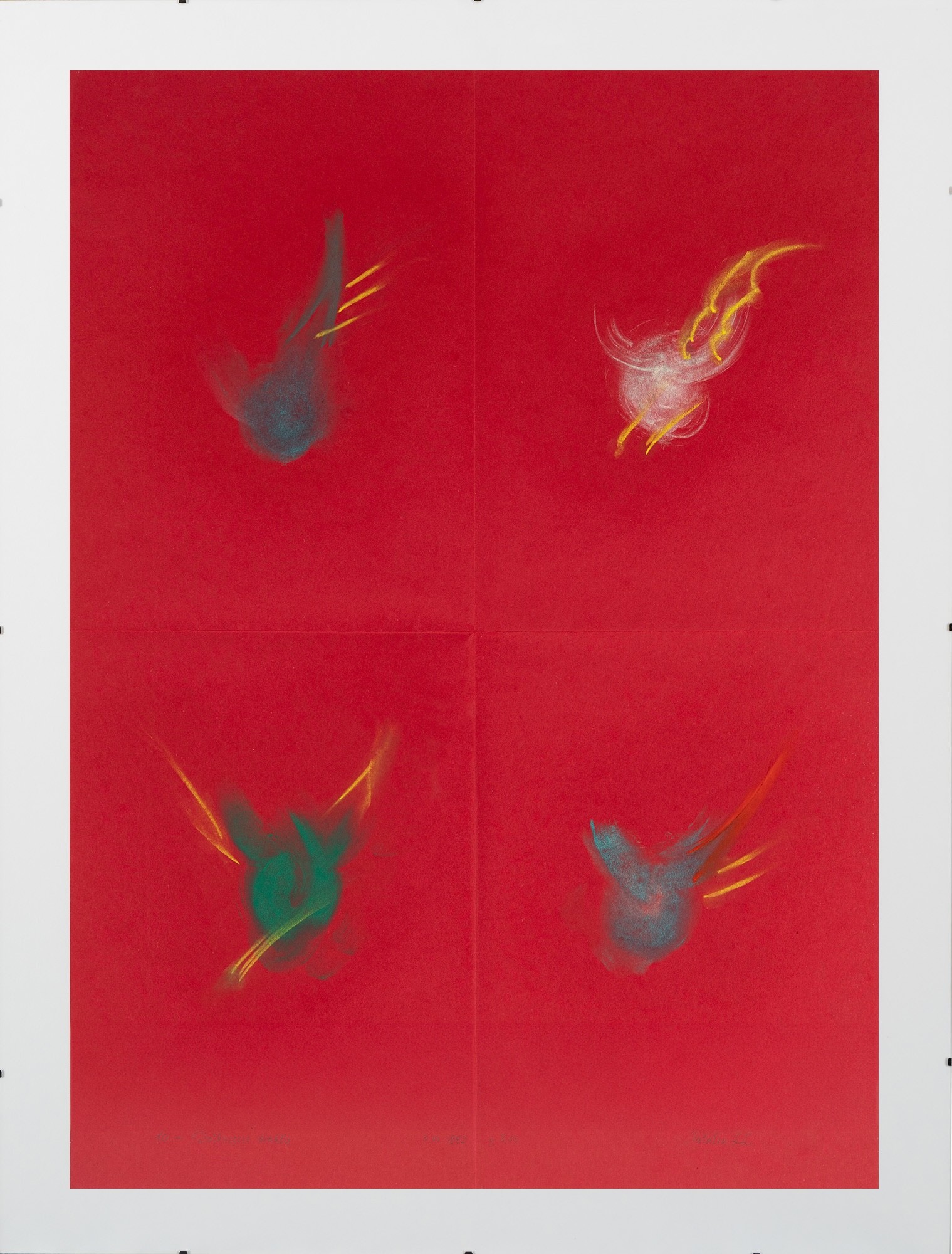 Cykl pasteli na papierze zatytułowanych „Dotknięcie diabła” (datowanych przede wszystkim na lata 1982–1984), to unikalny zapis stanów świadomości artystki, które towarzyszyły jej seansom i działaniom performatywnym. Ich efektem były także fotografie i rysunki. Lach-Lachowicz w latach 80. zajmowała się rejestrowaniem odmiennych stanów umysłu, wykonując eksperymenty na własnej psychice i percepcji. Te prowokacyjne działania były próbą artystycznego zmierzenia się z tym co irracjonalne i nie w pełni kontrolowane, a przez co postrzegane jako ciemna, mroczna strona naszej psychiki (lęki, obsesje, niepokój). Oferowane prace zwracają uwagę ekspresyjnymi, szybko kładzionymi plamami koloru. Daty i godziny, które pojawiają się w tytułach pasteli, odnoszą się do konkretnych seansów – traktowanych jako jednorazowe, ściśle określone wydarzenia. Cykl wpisuje się wieloletni projekt artystki, w którym to własne ciało, psychika i doświadczenie stają się głównym polem badania i artystycznych poszukiwań (np. „Sztuka konsumpcyjna” i „Śnienia”).