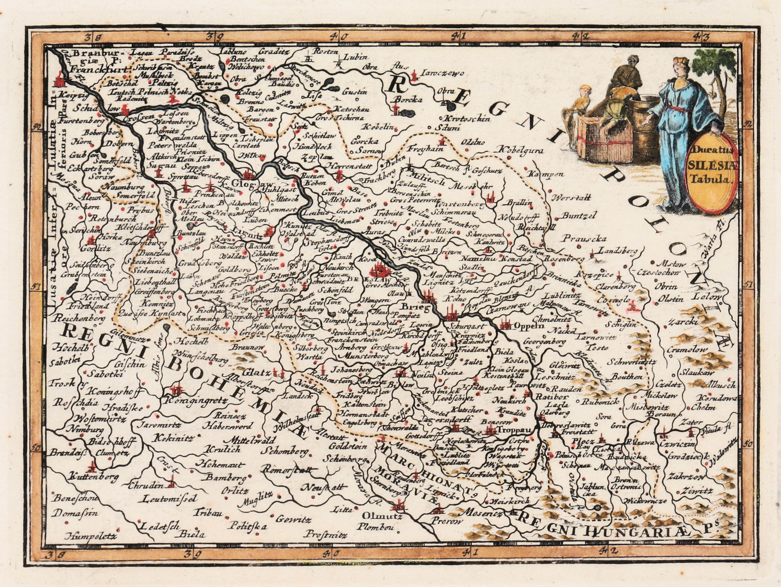 Mapa Dolnego Śląska pochodząca z „Tabulae Geographicae ...”, Würzburg, 1739miedzioryt kolorowany, 14,5 x 19,2 cm (odcisk płyty)stan zachowania bardzo dobry
