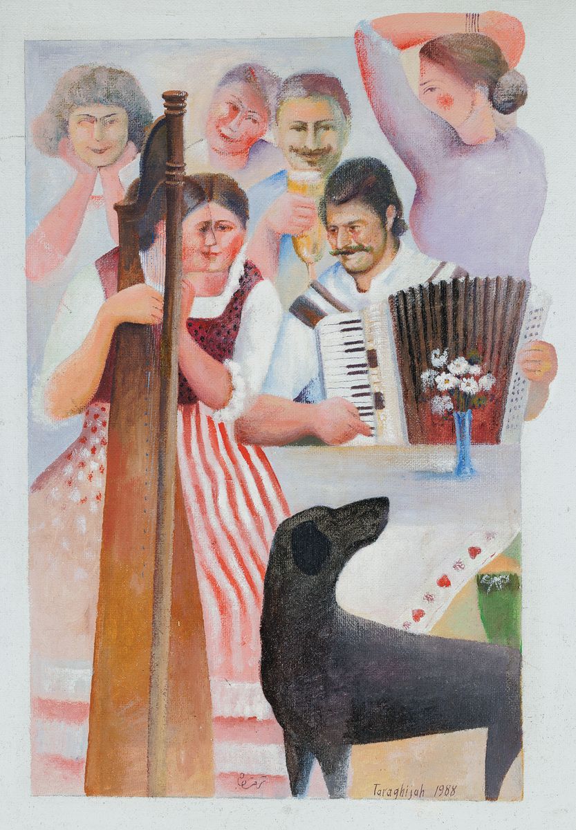 Sygnowany p.d.: Taraghijah 1968, śr. d. alfabetem perskim