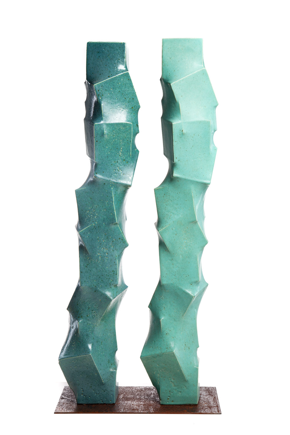 glina jasna szamotowa, szkliwo barwne, podstawa stalowa, 88,50 x 39,50 x 22 cm; niesygnowane; pracownia autorska, 2016 r.