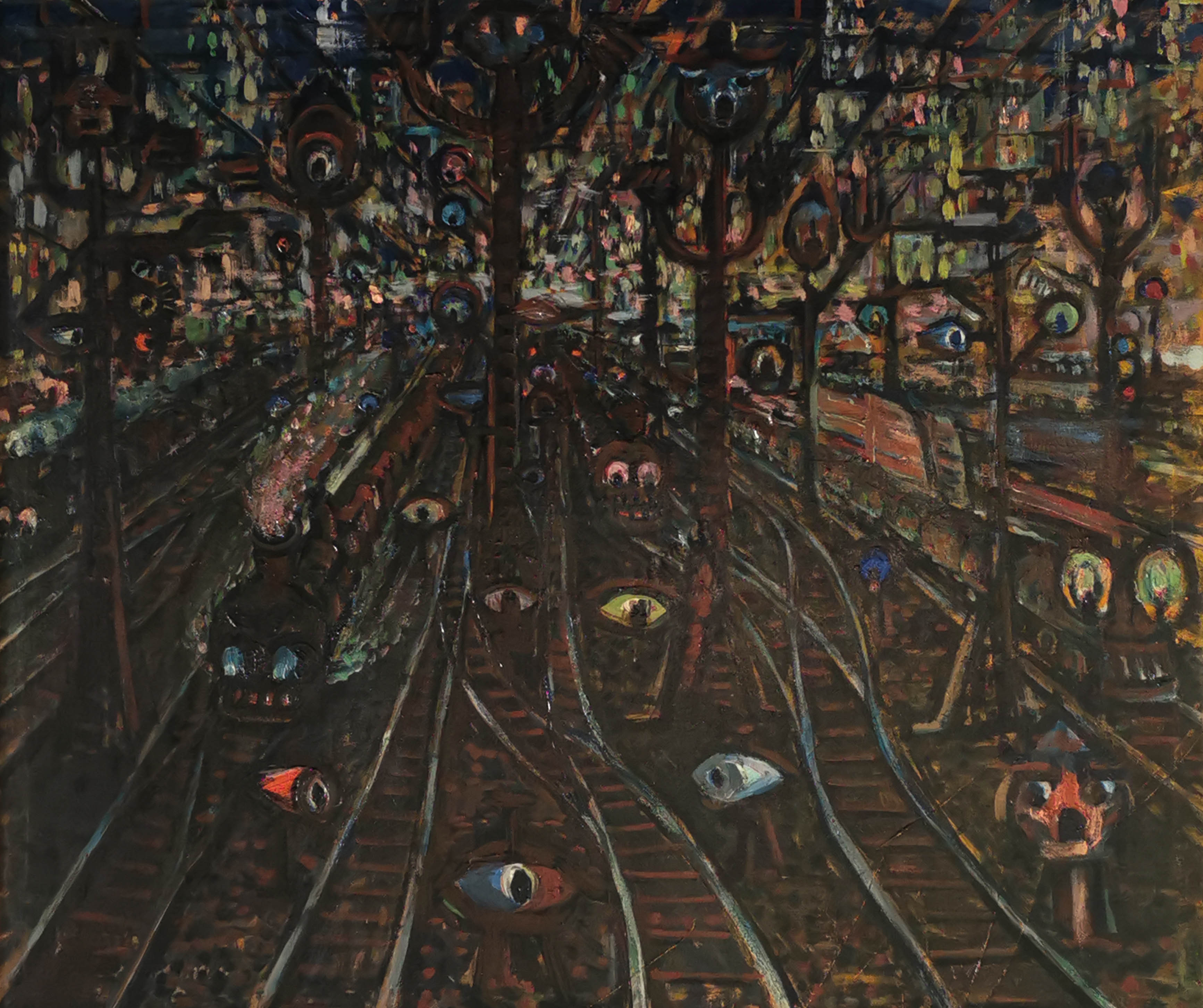 olej, płótno; 53,5 x 64 cm (w świetle oprawy);opisany l. d.: … (nieczytelnie);na odwrocie napis: Dworzec kol. / M Gawlak oraz nalepka Centralnego Biura Wystaw Artystycznych w Warszawie.