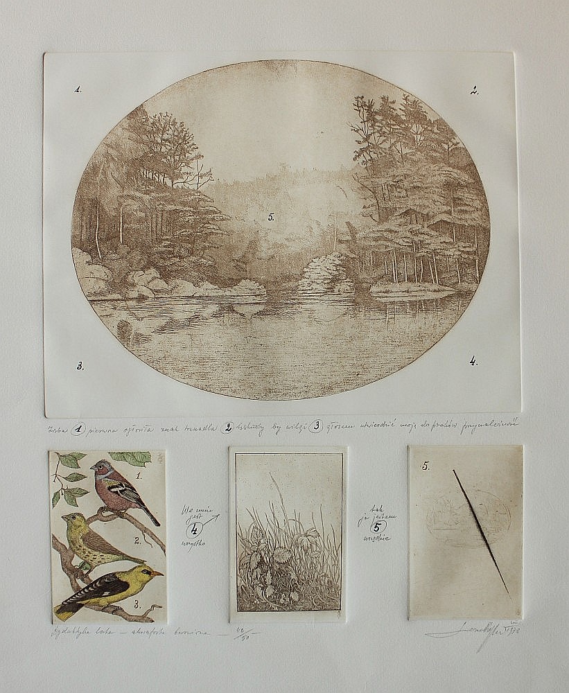 sygn. dat. p.d. LeszekRózga imp. / 1978 i na płycie monogramem LR/78/Vakwaforta, akwarela (42/50)25 x 32,5 cm; 12 x 8; 12x8 cm; 12 x 8 cm