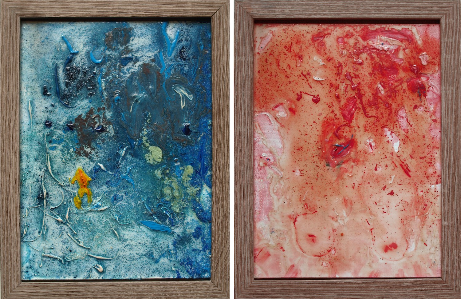 akryl, żywica, dykta, 2 x 23,5 x 17, 5 cm, sygn. na odwrocie