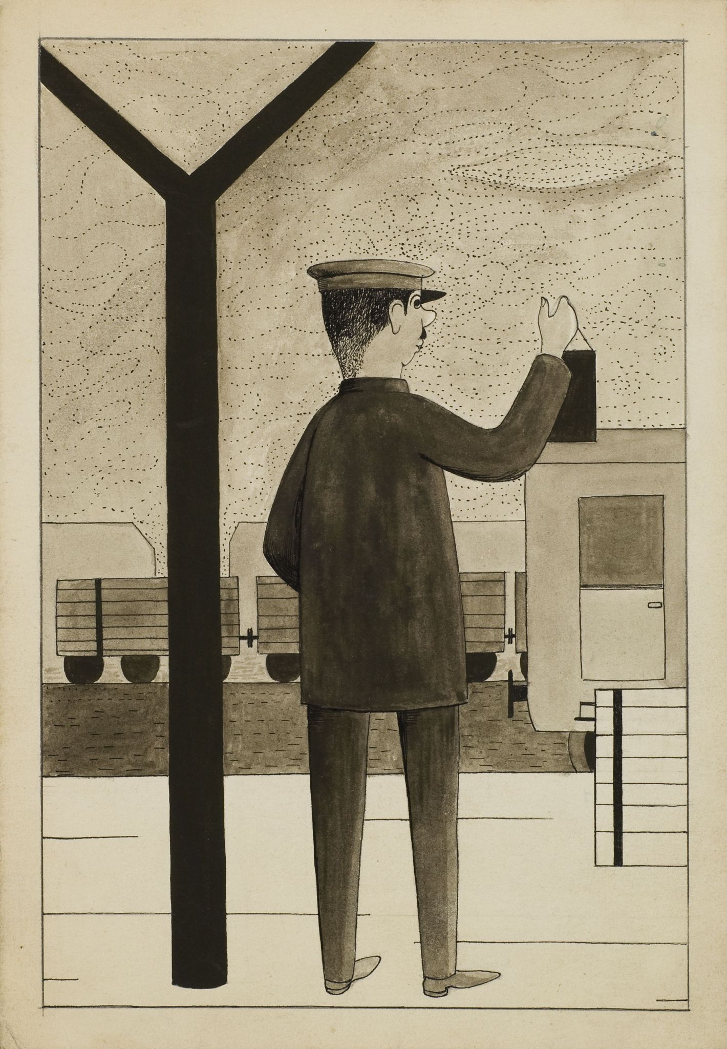 rysunek, tusz, karton, wym. 24,4x17 cm,