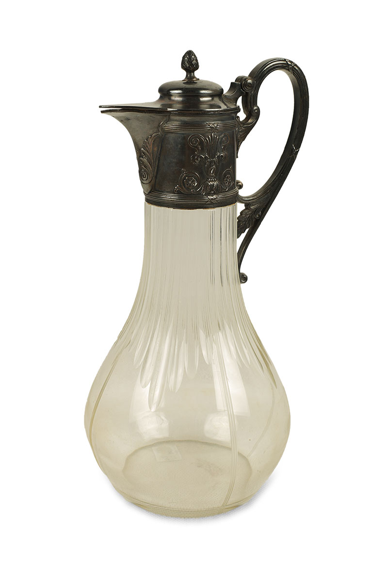 szkło kryształowe, cyna srebrzona, wys. 31 cm