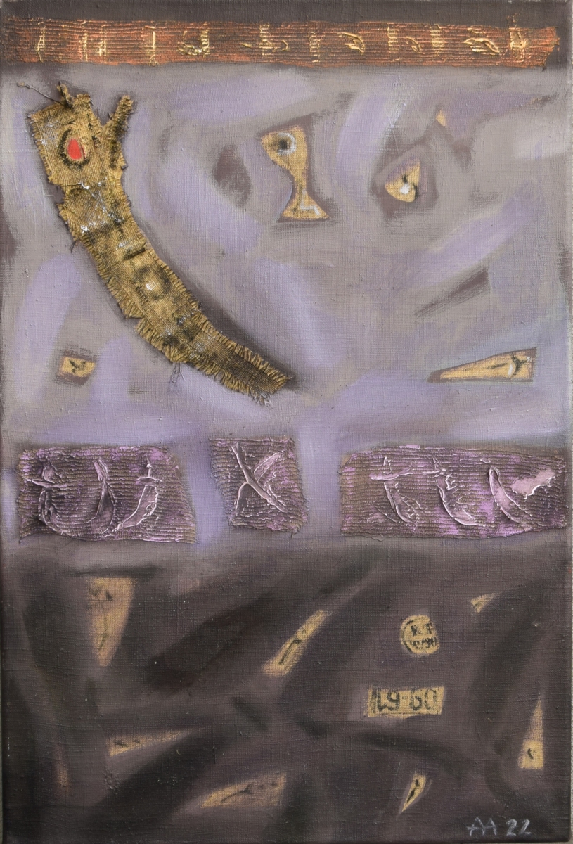 technika mieszana (olej, akryl, gesso, technika autorska), płótno, 80 x 60 cm,