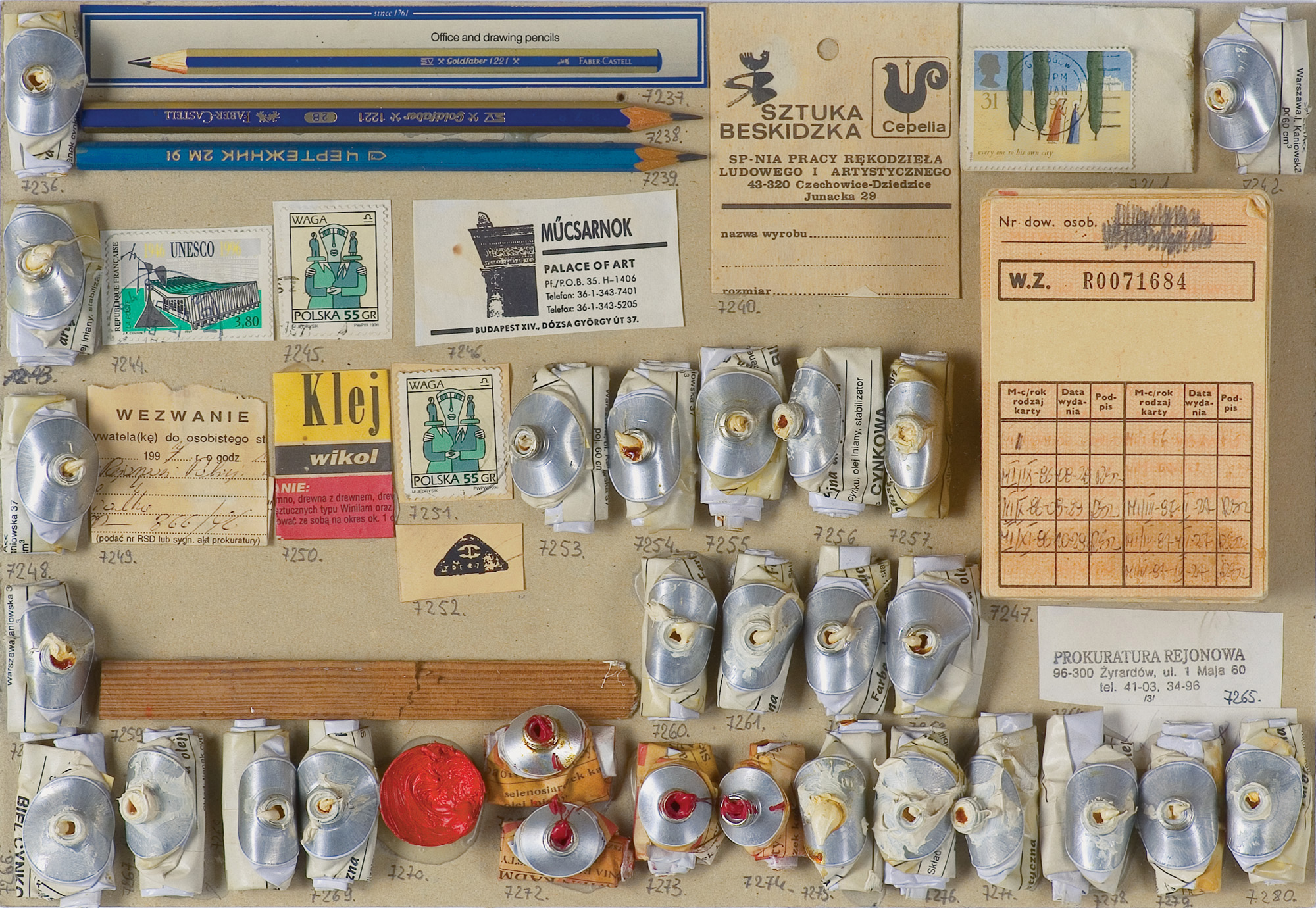 Inny charakter ma seria Dziennika B. To niewielkie drewniane gablotki, gdzie Pawlak jak (nie)grzeczny chłopiec bawi się odpadkami życia i pracy. Intencja tego appendiksu jest dość czytelna: one także stanowią wariant notacji mijającego czasu. Lecz o ile malowane Dzienniki odnoszą się do samego dzieła, o tyle Dzienniki B przechowują pamięć o narzędziach użytych do produkcji dzieła i okolicznościach jego powstania. (A. Biernacki, Włodzimierz Pawlak: dzienniki 1989-2022 (kat. wystawy), Muzeum Sztuki Łódź 2023.