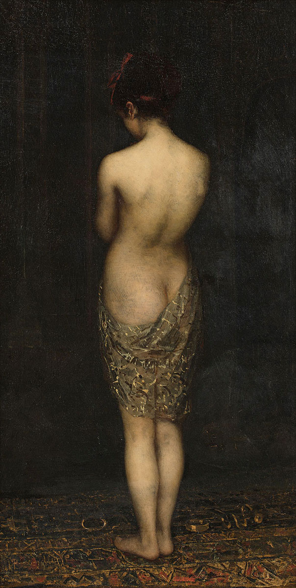 Oferowana praca Szyndlera należy do serii kilku mniejszych wariantów o zbliżonej tematyce i kompozycji. W jednym z nich młoda kobieta pojawia się w towarzystwie władcy haremu i eunucha (Dramat w seraju), w innym – z pojedynczym mężczyzną (Kobieta w kąpieli), a w trzecim – w scenerii z tryskającą fontanną (Dziewica w kąpieli). W każdym z tych ujęć artysta łączy akademicką perfekcję warsztatu z egzotyczną zmysłowością, typową dla malarstwa orientalistycznego drugiej połowy XIX wieku. Prezentowany kameralny, subtelny wariant „Dziewczyny w kąpieli” zachwyca wyważonym erotyzmem i doskonałym malarskim opracowaniem aktu. Szyndler – wierny tradycji akademickiej, a zarazem wrażliwy na atmosferę i światło – osiąga tu mistrzowski efekt klasy i elegancji, czyniąc z tego przedstawienia jedno z najbardziej wyrafinowanych studiów kobiecego ciała w jego dorobku.