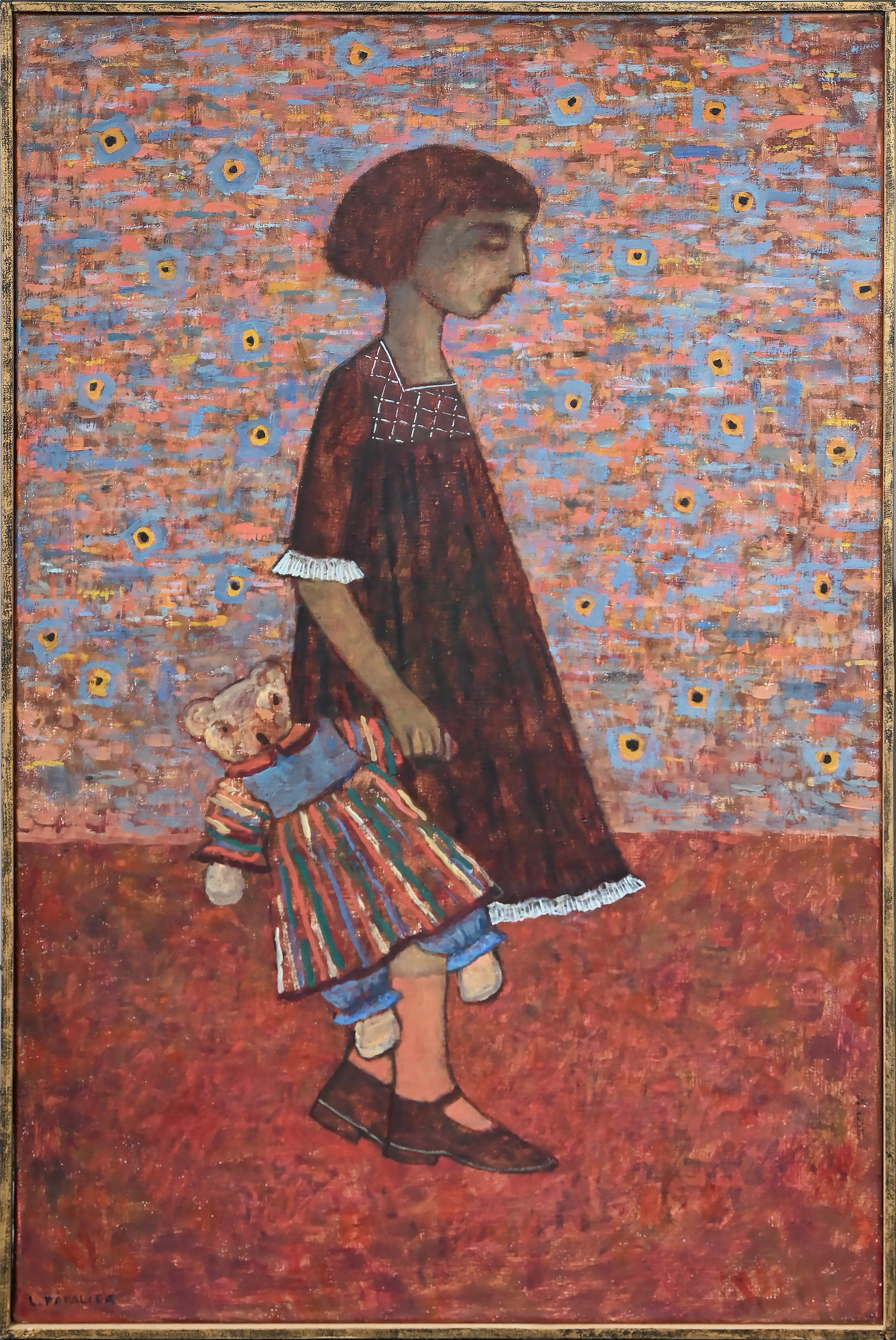 sygnowane na blejtramie: DZIEWCZYNKA Z MISIEM | L. PATALITA 1999 | 80 x 50