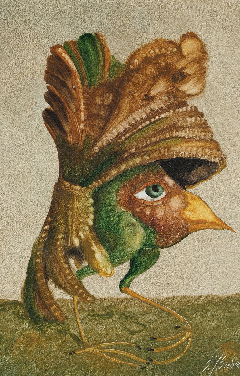 DZIWACZNY PTAK SZCZĘŚCIA W HEŁMIE