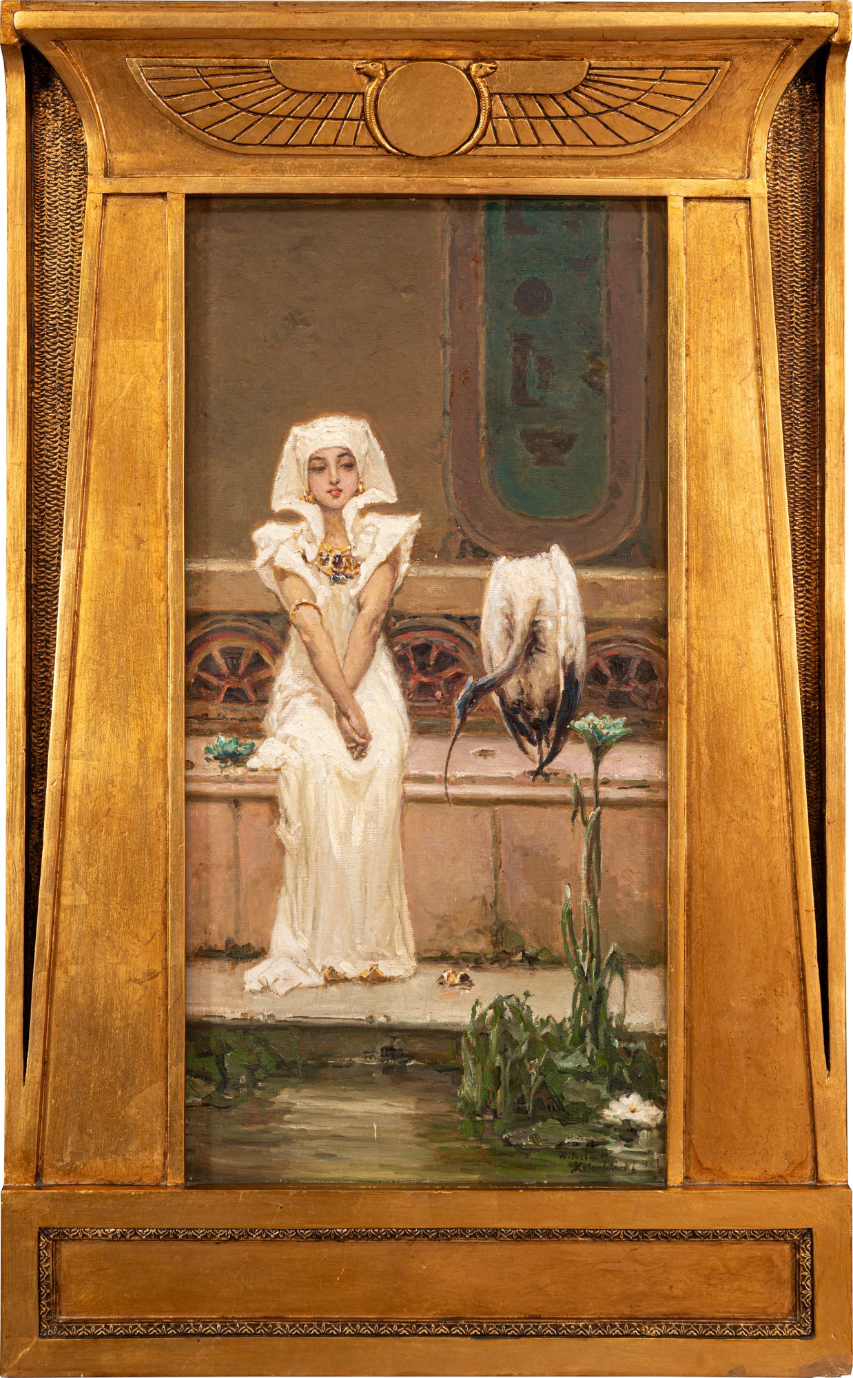 Oferowane dzieło to klasyczny przykład tego motywu w malarstwie artysty. Młodej Egipcjance w pałacowym wnętrzu towarzyszy ibis – święty ptak królestwa Nilu. Swobodne pociągnięcia pędzla, nieco rozmyte kontury, dodają kompozycji lekkości i aury młodzieńczej tęsknoty.