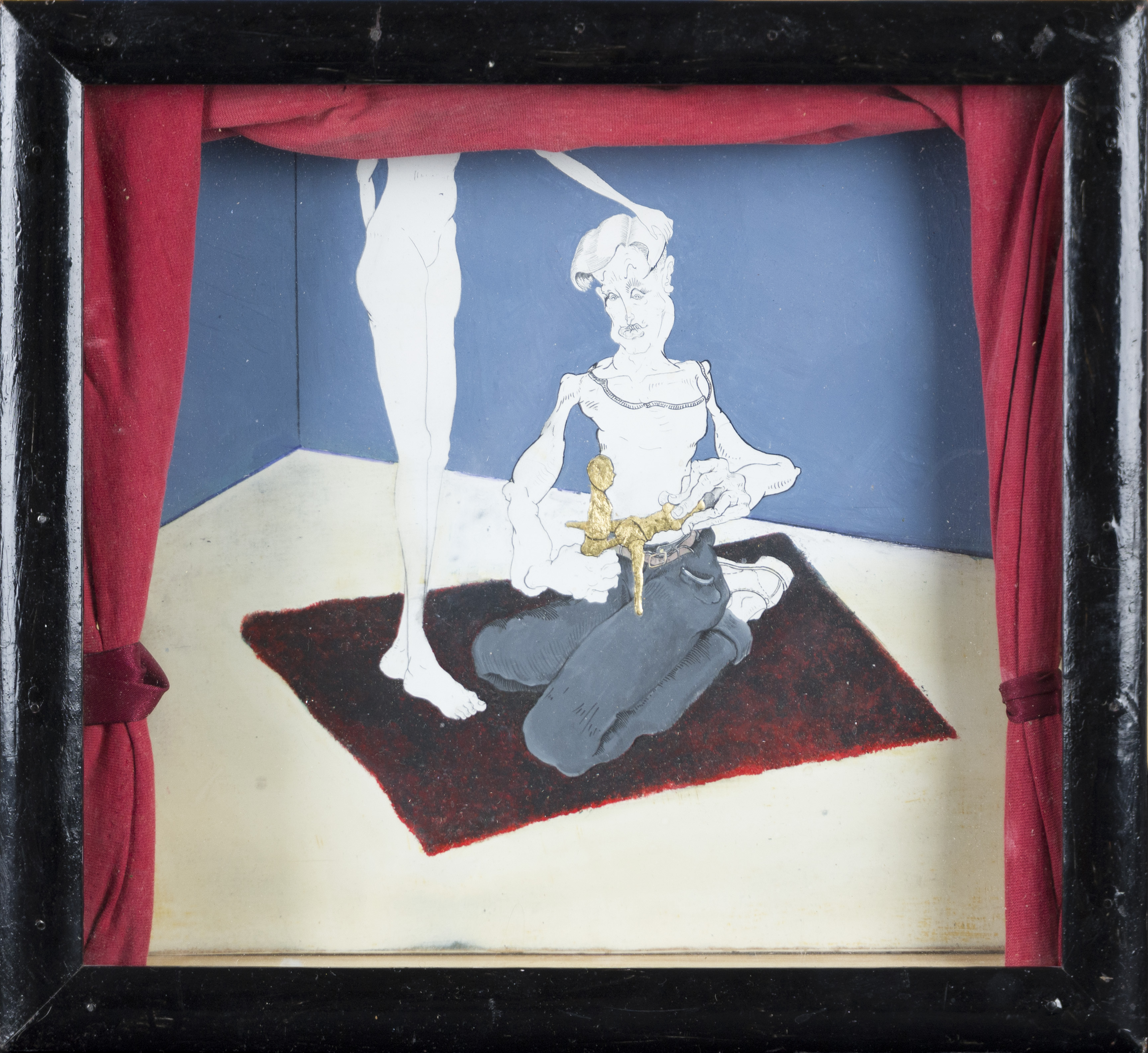 akryl, tempera, tekstylia, 23 karatowe złoto dukatowe35 x 32 x 5 cmsygn. na odwrociu: Piotr Tadeusz Mosur 2017 | "Egzamin"
