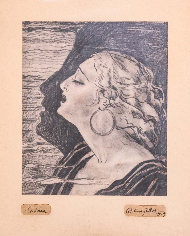 wymiary: 193mm - 162mm Rysunek ołówkiem,sygn. i dat. na nalepkach doklejonych u dołu. Oprawa wykonana w epoce w składzie farb i przyborów malarskich J. Wadowskiego w Warszawie, ul. Marszałkowska 121. Stan zachowania idealny.