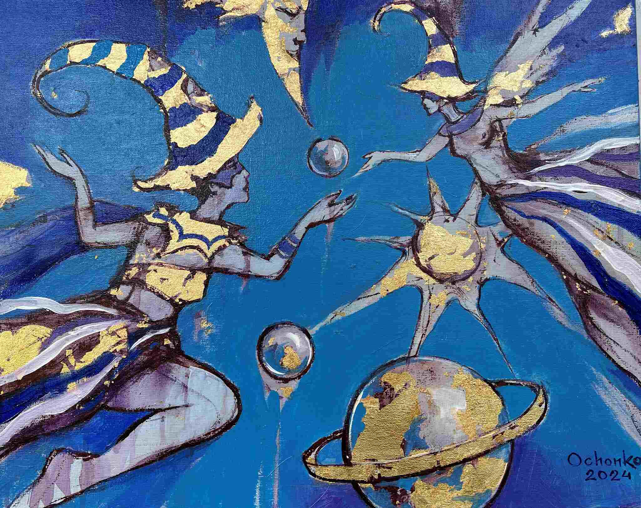 olej, akryl, szlagmetal, płótno, 40 x 50 cm