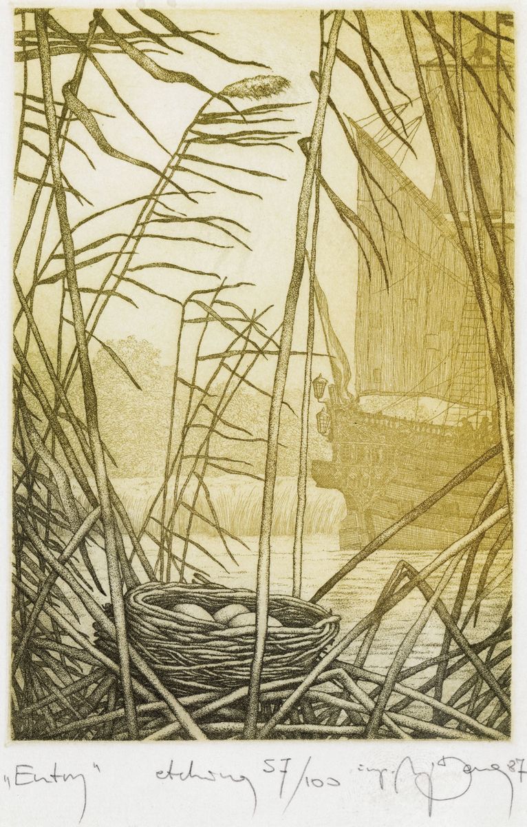 Akwaforta, akwatinta, papier; 14 x 9,7 cm (kompozycja)Sygnowany ołówkiem pod ryciną: "Entry" etching 57/100 imp. ADeredosOprawiona