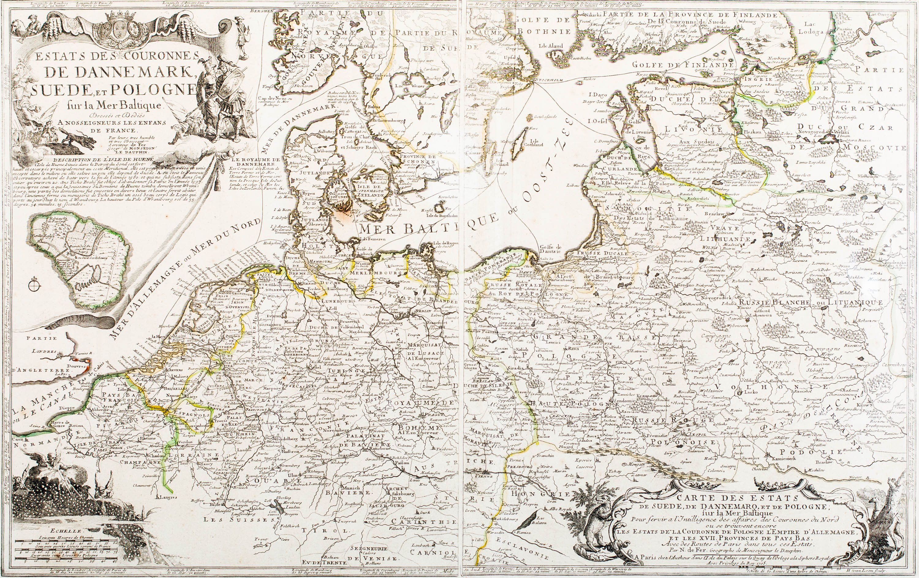 Mapa Danii, Szwecji i Polski, wyd. Nicolas de Fer, stan drugi, Paryż, 1705miedzioryt, 44,5 x 70 cm w świetle oprawyImago Poloniae, K12/5