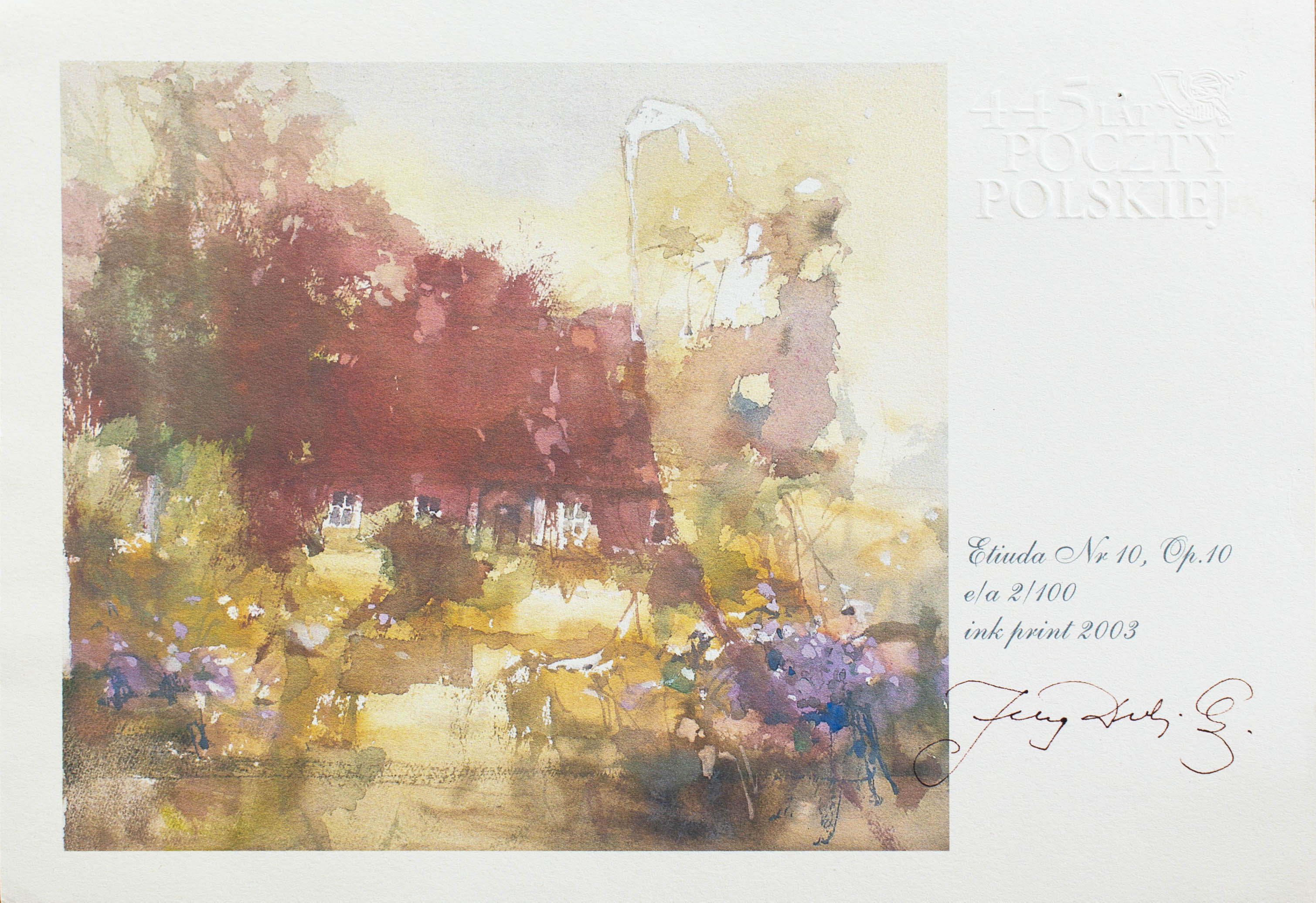 Inkografia wydana w 445. rocznicę powstania Poczty Polskiej, jubileuszowo na czerpanym papierze.