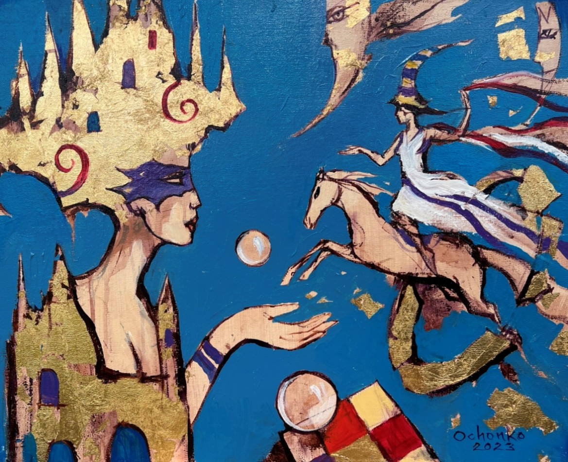 technika własna, szlagmetal, akryl, olej, płótno, 40 x 50 cm