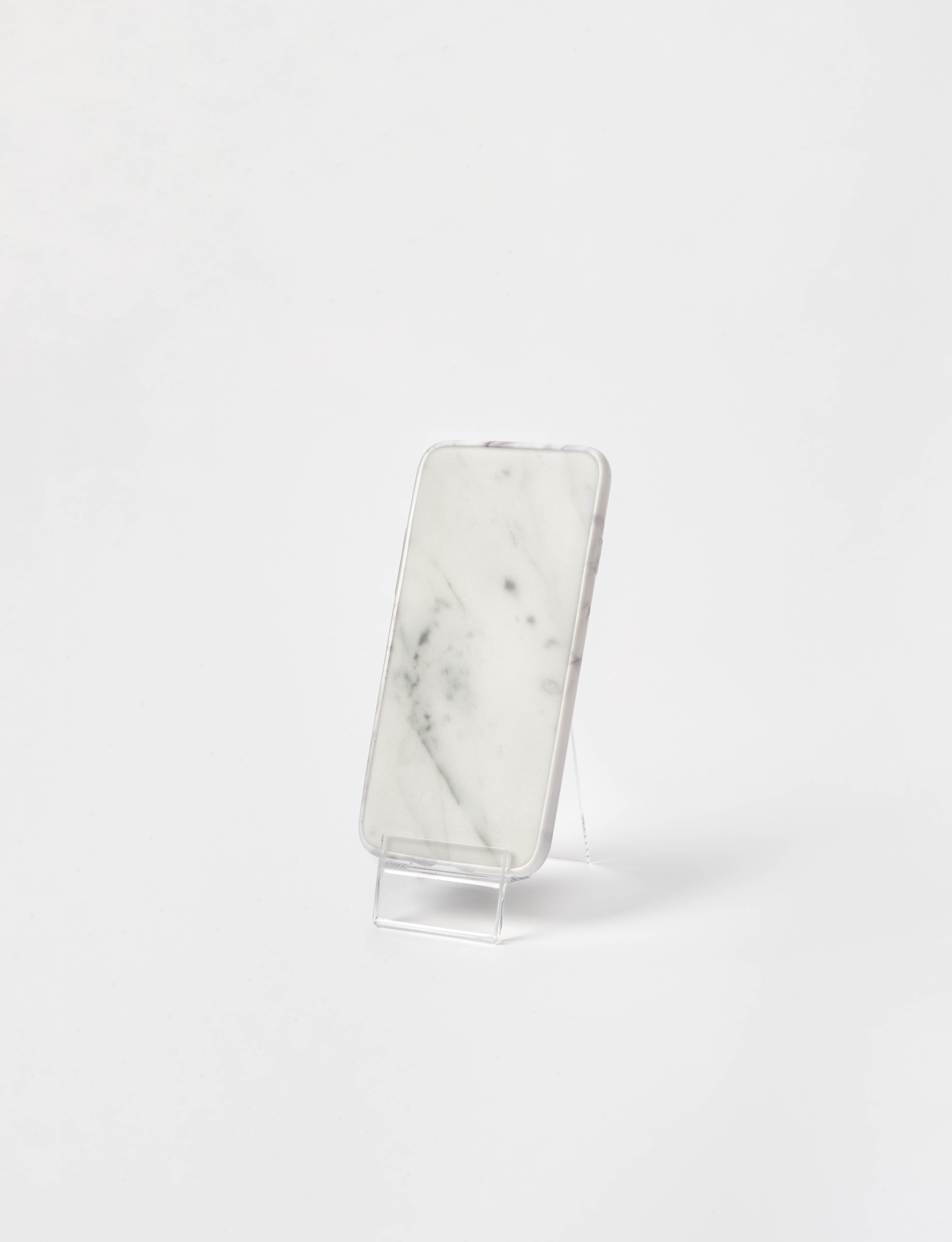 Zaprojektowałem model iPhone 8 – wymiary pobrałem ze strony Apple. Fachowiec z pracowni marmuru wykonał go ręcznie. Tak długo polerował i zaoblał marmur, aż ten stał się doskonałym odwzorowaniem iPhone 8 i zmieścił się w case’ie. Potem analizowałem sposób przedstawiania iPhone’ów podczas premier czy na lombardowych witrynach – i w takiej konwencji został ten obiekt ukazany na zdjęciu.
