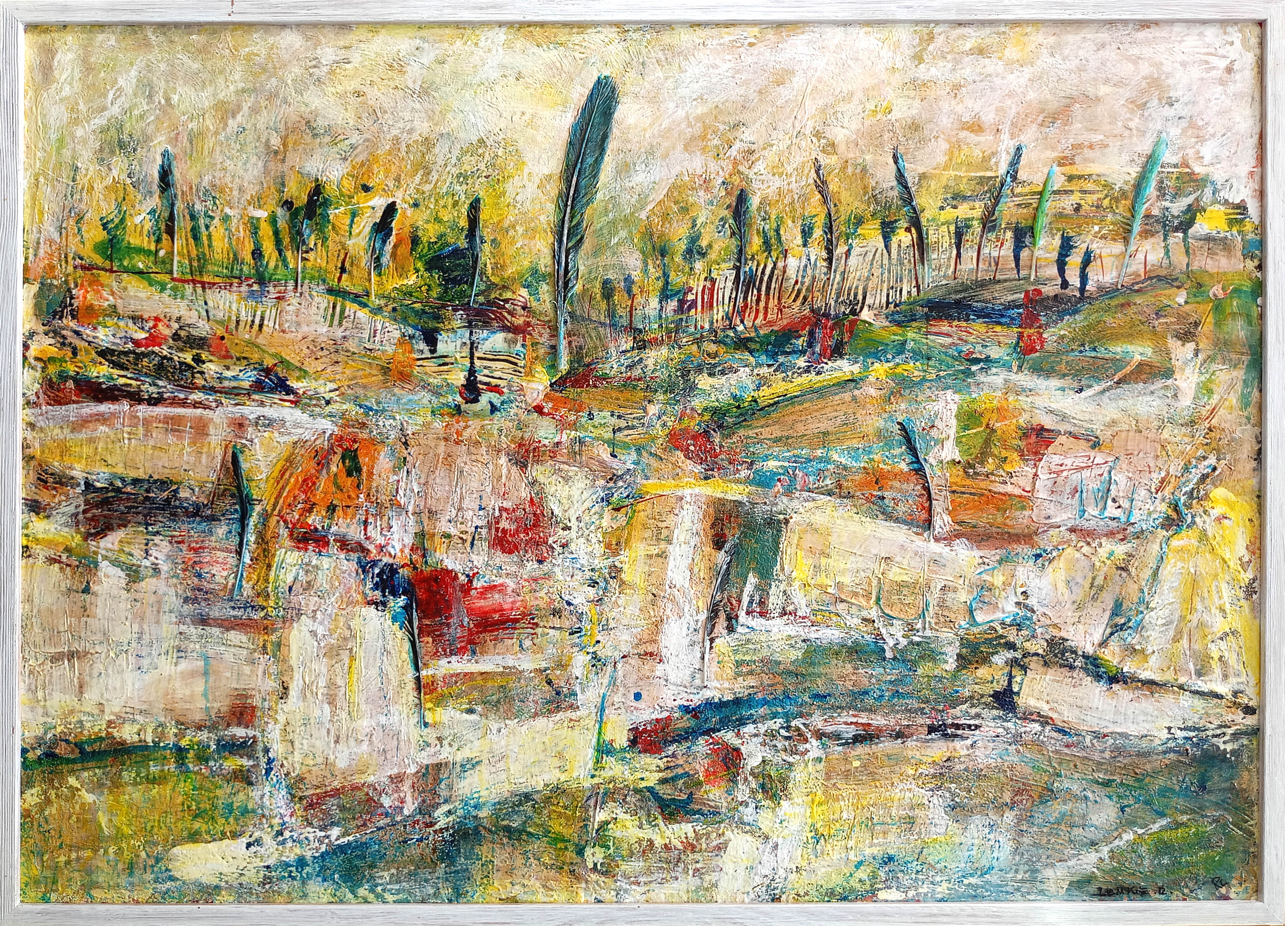 technika mieszana na desce, 50 x 70 cm, oprawiony, 71,8 x 51,8 cm wraz z oprawą