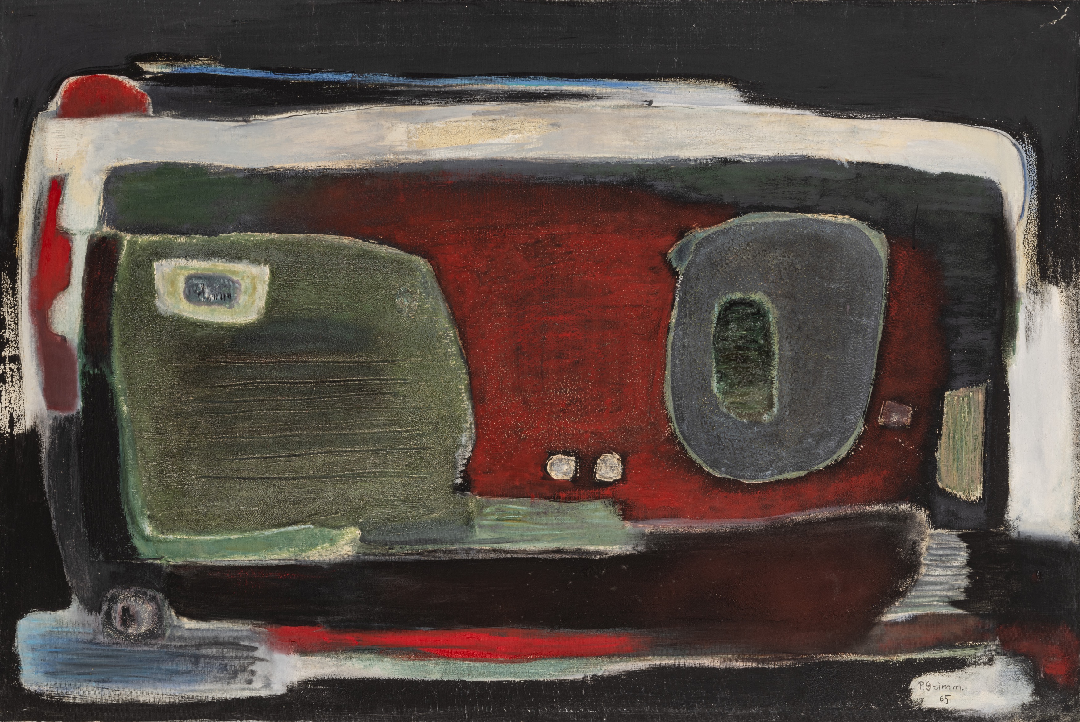 Olej, płótno97 x 146,5 cmSygn. i dat. p.d.: „P.Grimm 65”Na odwrociu: Nr inw. „32”, zdjęcie „235”; data 1965