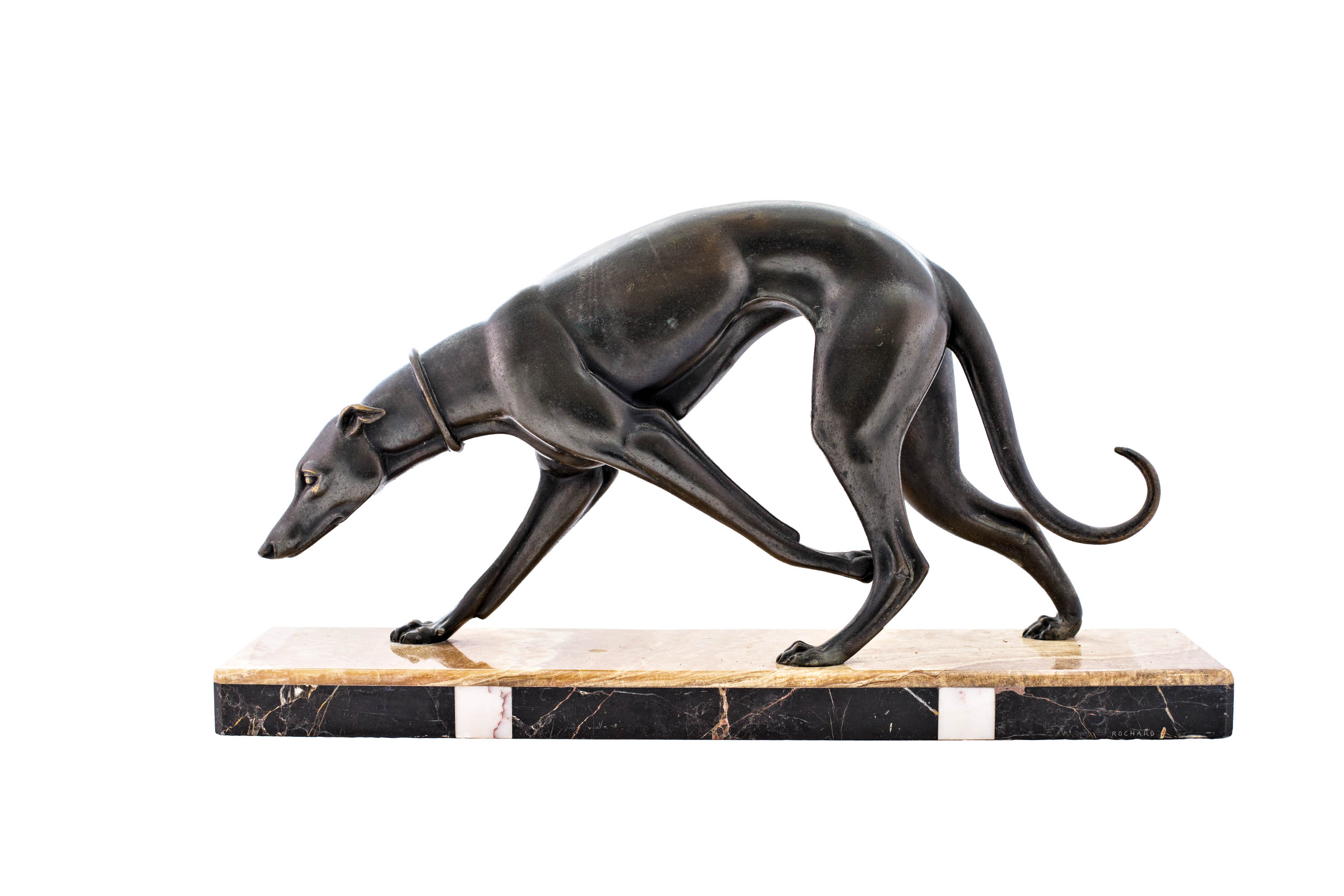 stop metali, podstawa marmurowa,sygn. na podstawie: ROCHARD;wys. 32,5 cm, wym. podstawy 15 × 60 cm