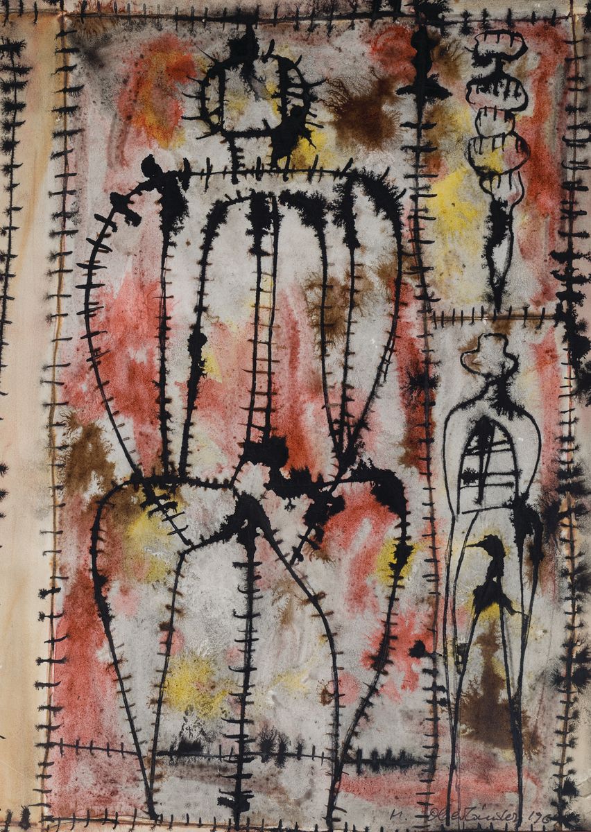 Tusz, akwarela; 56 x 41 cm (w świetle p-p)