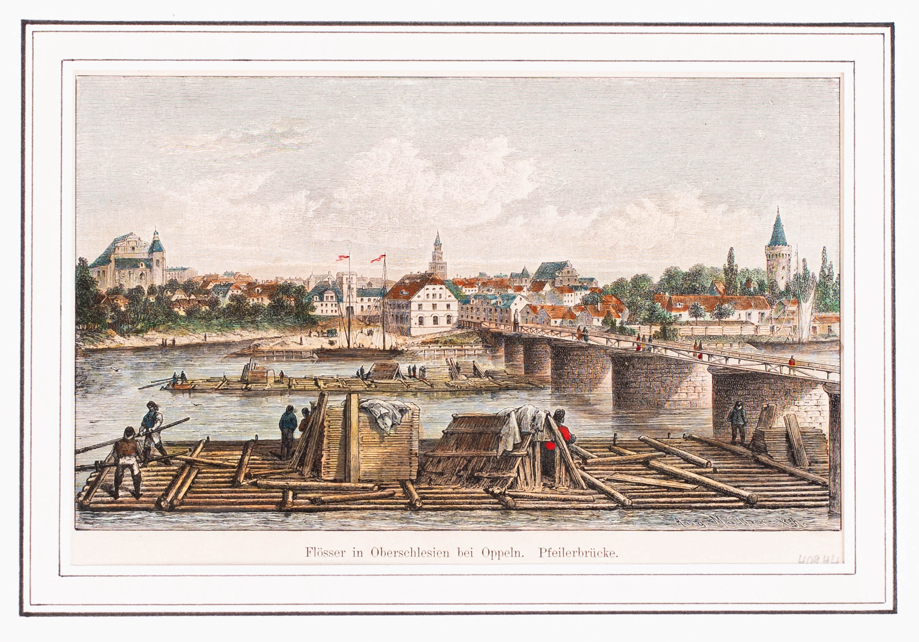 Flösser in Oberschlesien bei Oppeln. Pfeilerbücke