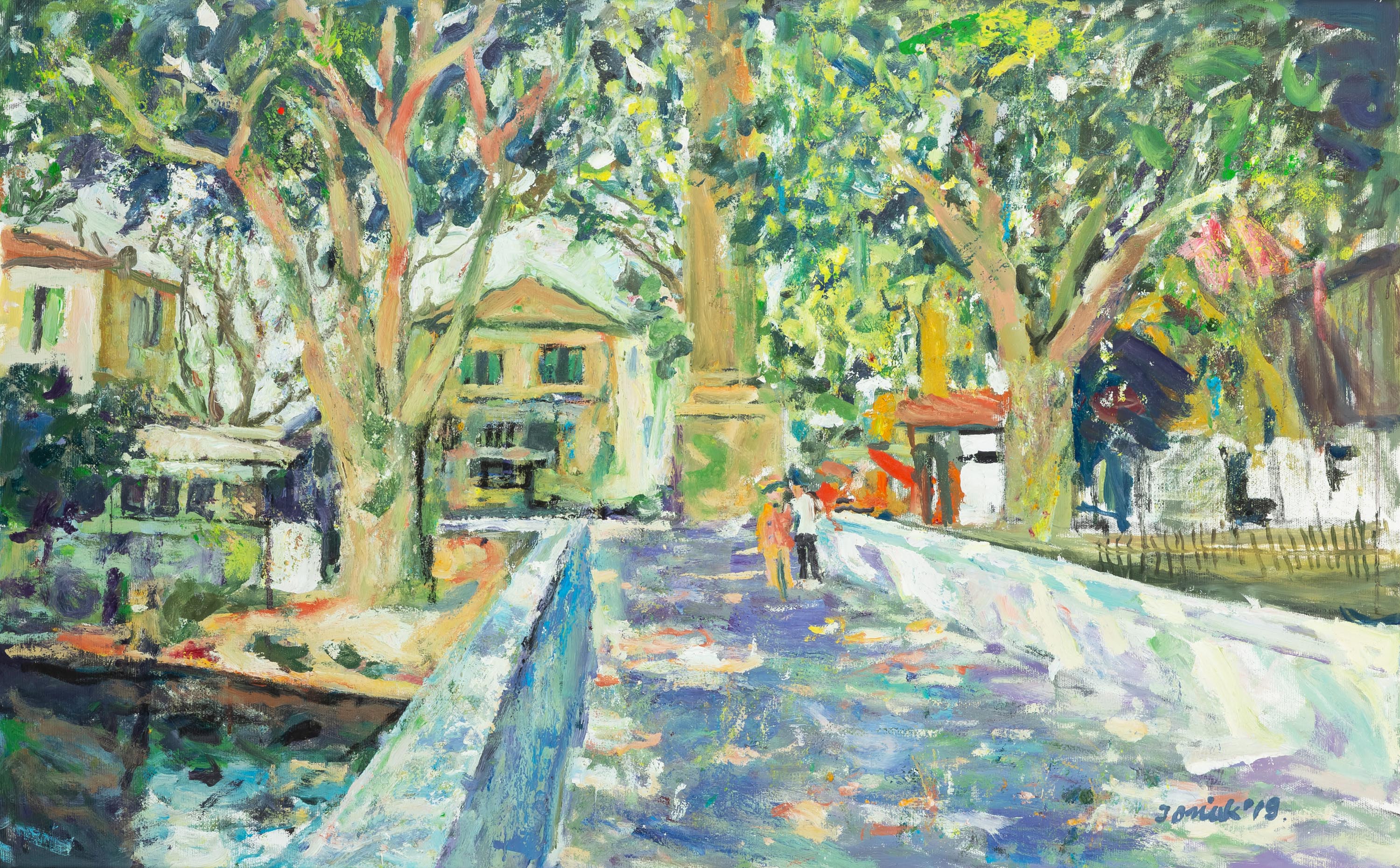 olej, płótno, 60 × 95 cm,sygn. i dat.: p.d.: Joniak 15,na odwrocie opisany, sygn. i dat.: JULIUSZ JONIAK / "FONTAINE DE VAUCLUSE’ 15"/60 x 95