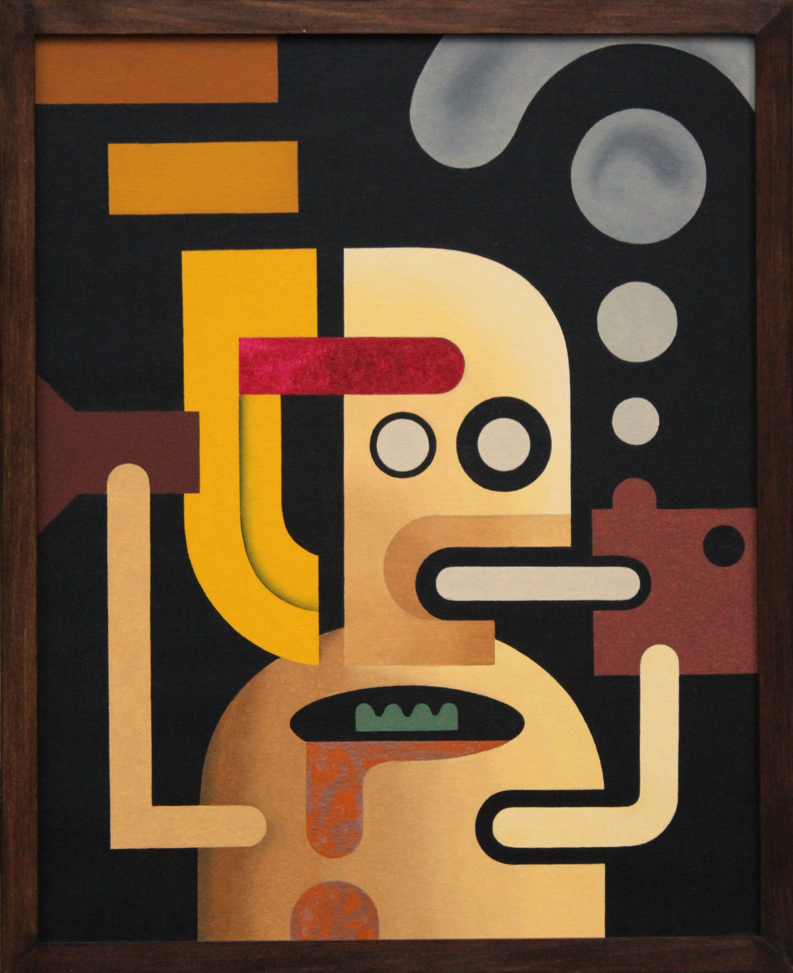 53 x 43 cmoprawiony w ramę 2 x 2 cm, Sygnatura, opis, datowanie na odwrociu: Marcin Łapiński, Fossilized singer, 2025