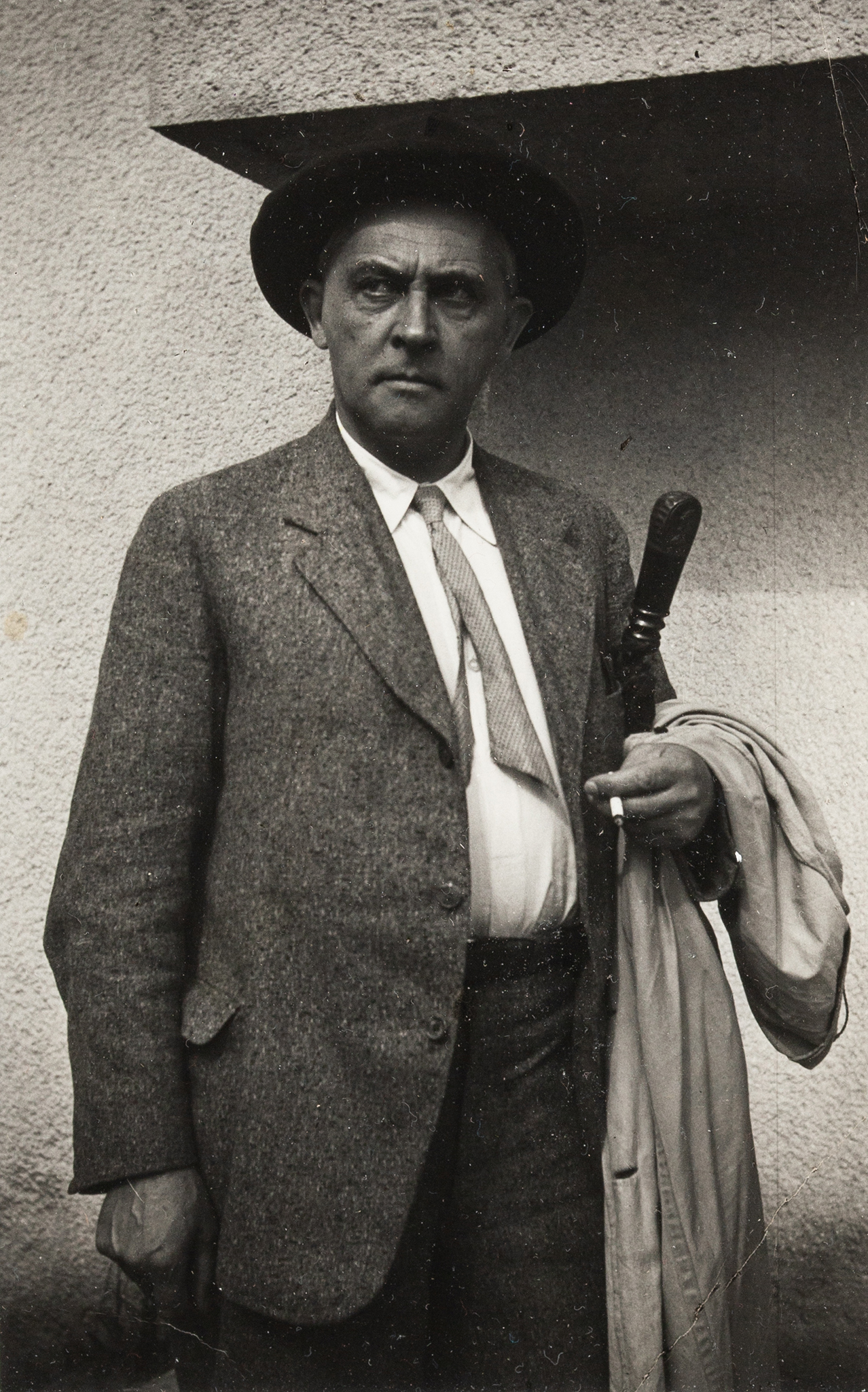 fotografia czarno-biała, odbitka żelatynowo-srebrowa na papierze barytowym, 13 x 8,5 cm.Opisany na odwrocie: "Stanisław Ignacy Witkiewicz | Witkacy | Wisła 1938 | copyright by | [pieczęć autorska]".