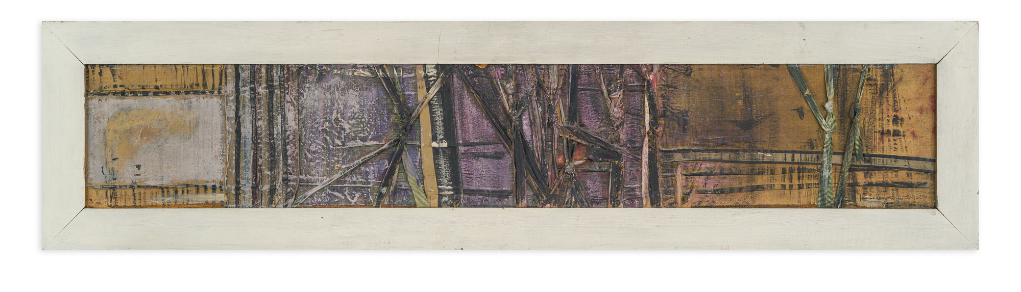 Collage, płótno, płyta pilśniowa; wym.: 21 x 122 cm;na odwrocie naklejka BWA Kraków z dopiskiem "Bratysława"