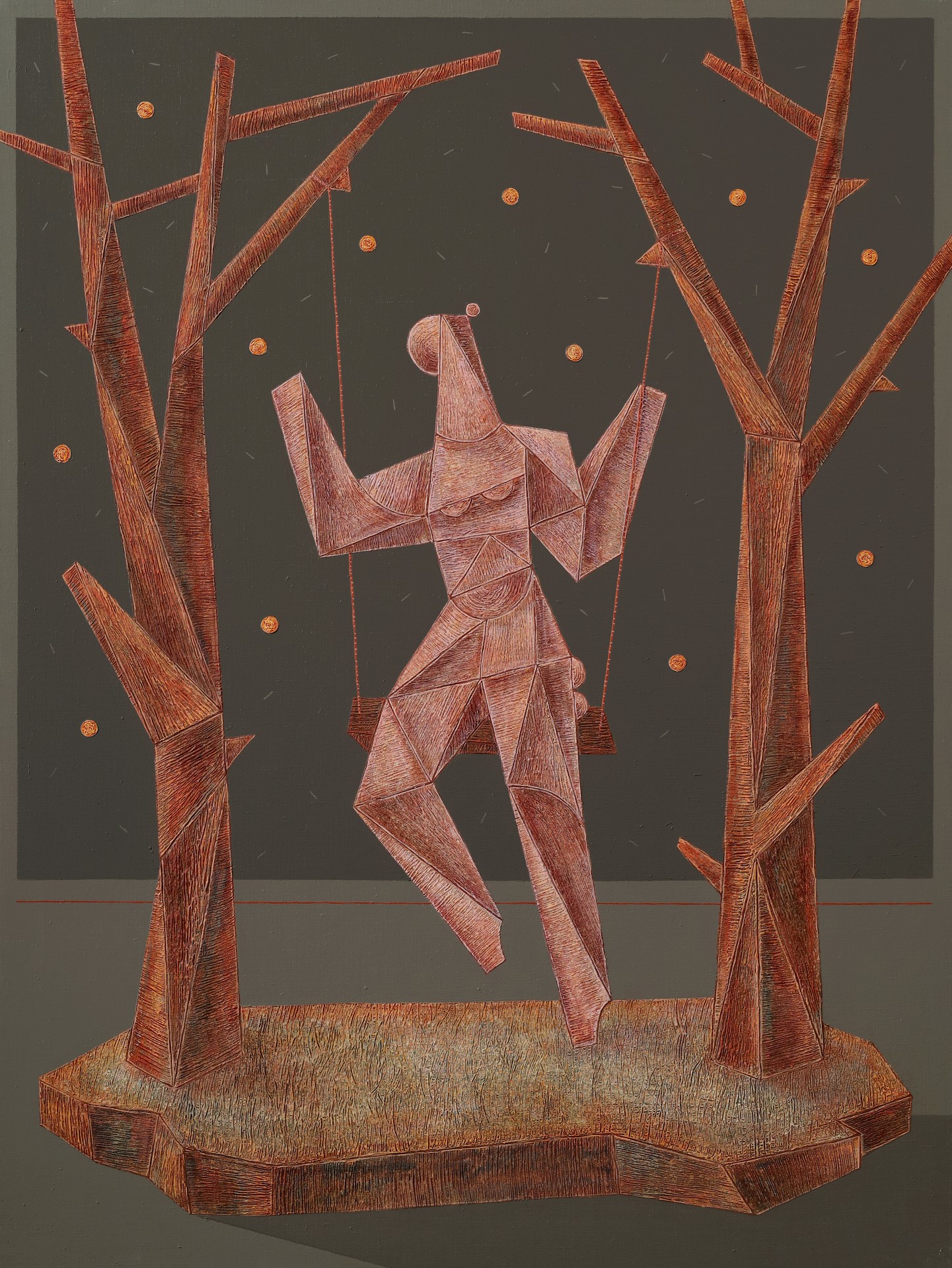 akryl, płótno, 120 x 90 cm,sygnowany i opisany na odwrocie: '[odcisk palca artysty] | A. Bakalarz | 2023 | "FWONH"'