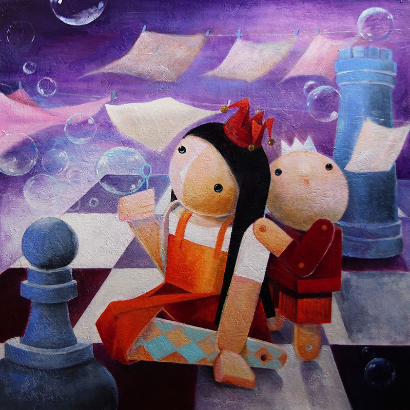 akryl, technika własna/płótno, 100 x 100 cm
