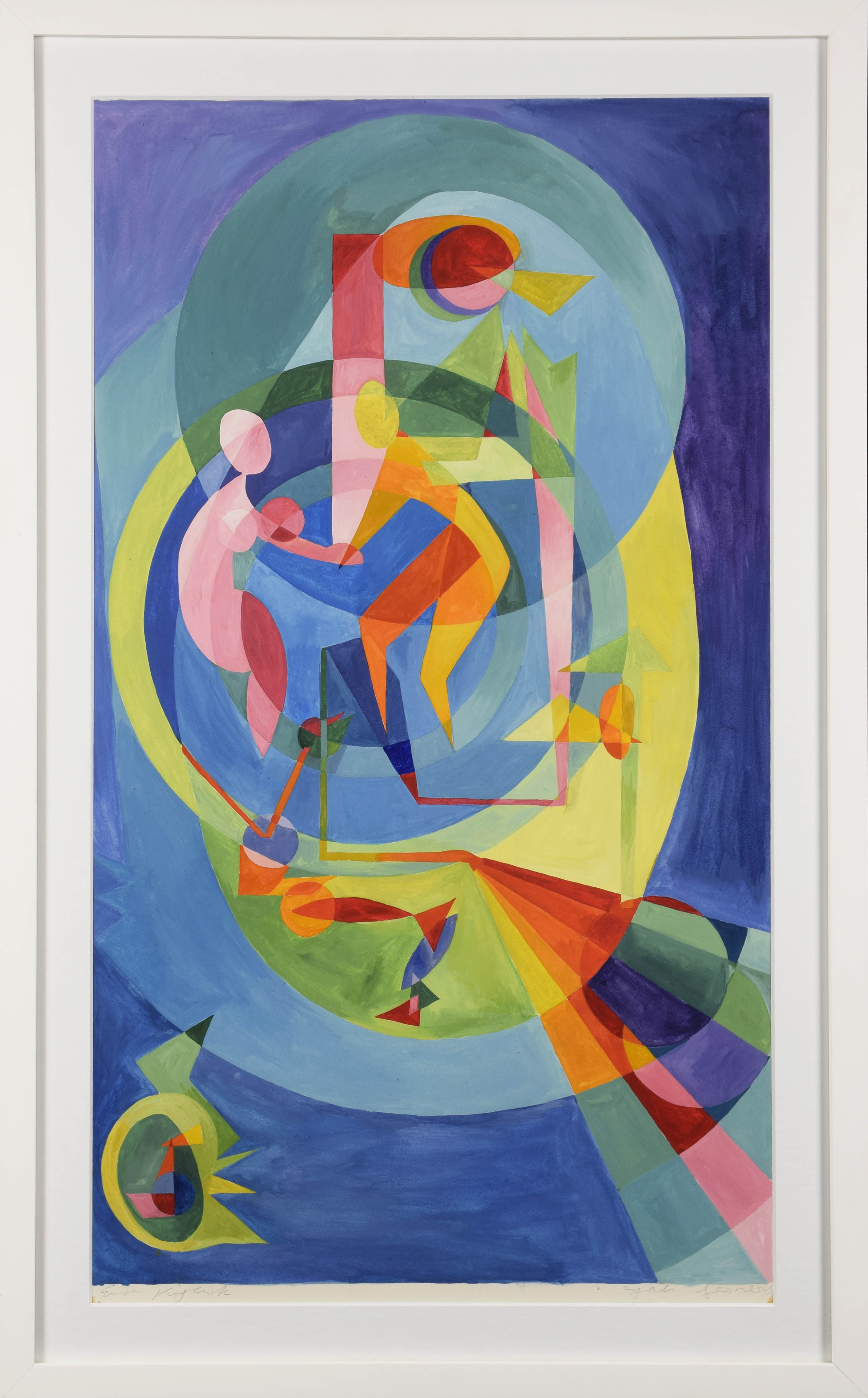 gwasz, papier; 64 x 38,5 cm;sygn. l. d.: Ewa Kuryluk (ołówkiem); tytuł p. d.: z cyklu Geomeros (ołówkiem).