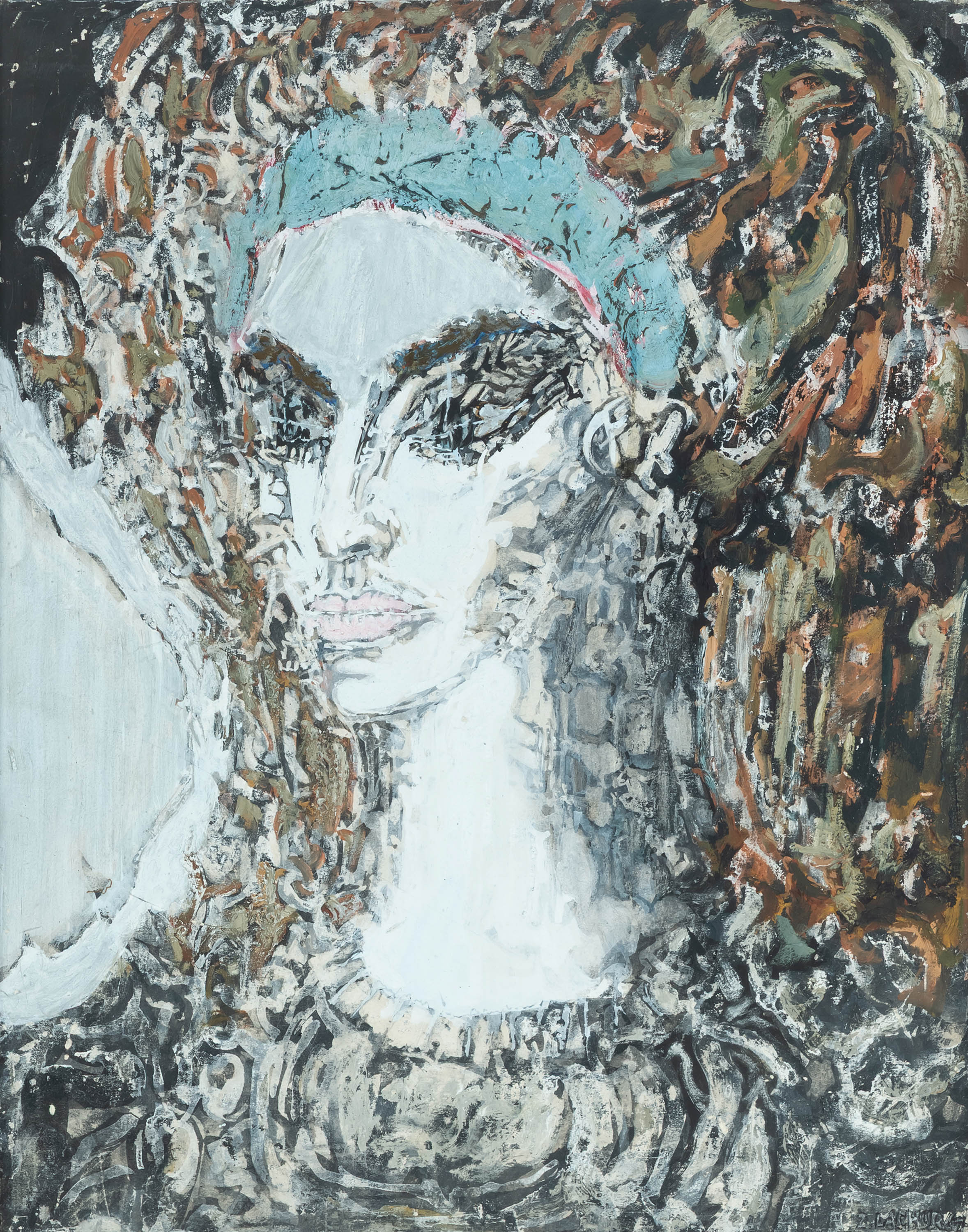 tempera, płyta, 50 x 39,5 cm,sygn. i dat.: Z. Lachur, na odwrocie opisany,sygn. i dat.: Z. LACHUR / Głowa dziewczyny / tempera, płyta