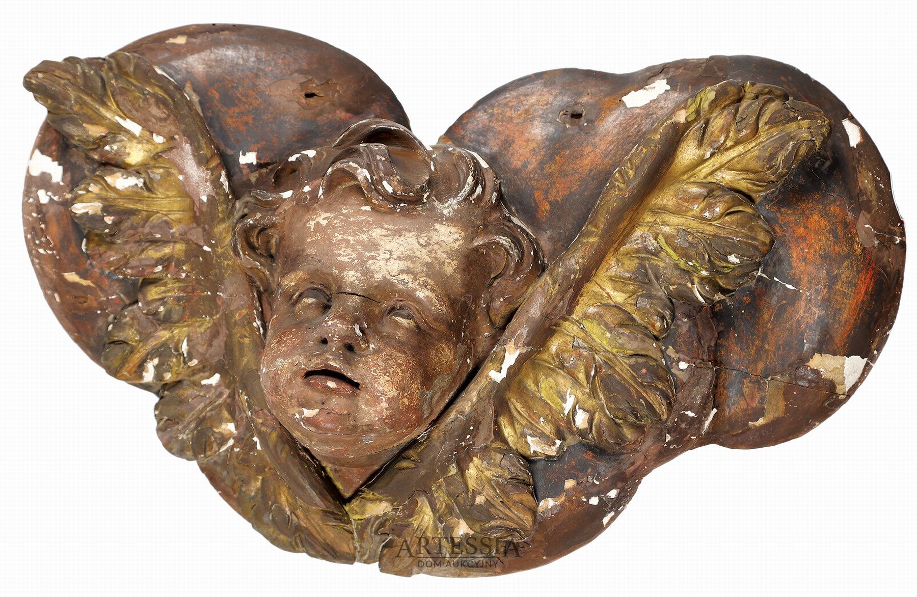 drewno lipowe, polichromowane, złocone, 32 x 56 cm,na odwrociu napis: ND.2548; stan zachowania: ubytki polichromii