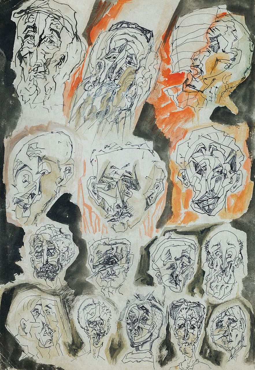 Tusz, piórko, akwarela; 30 x 20,5 cm
