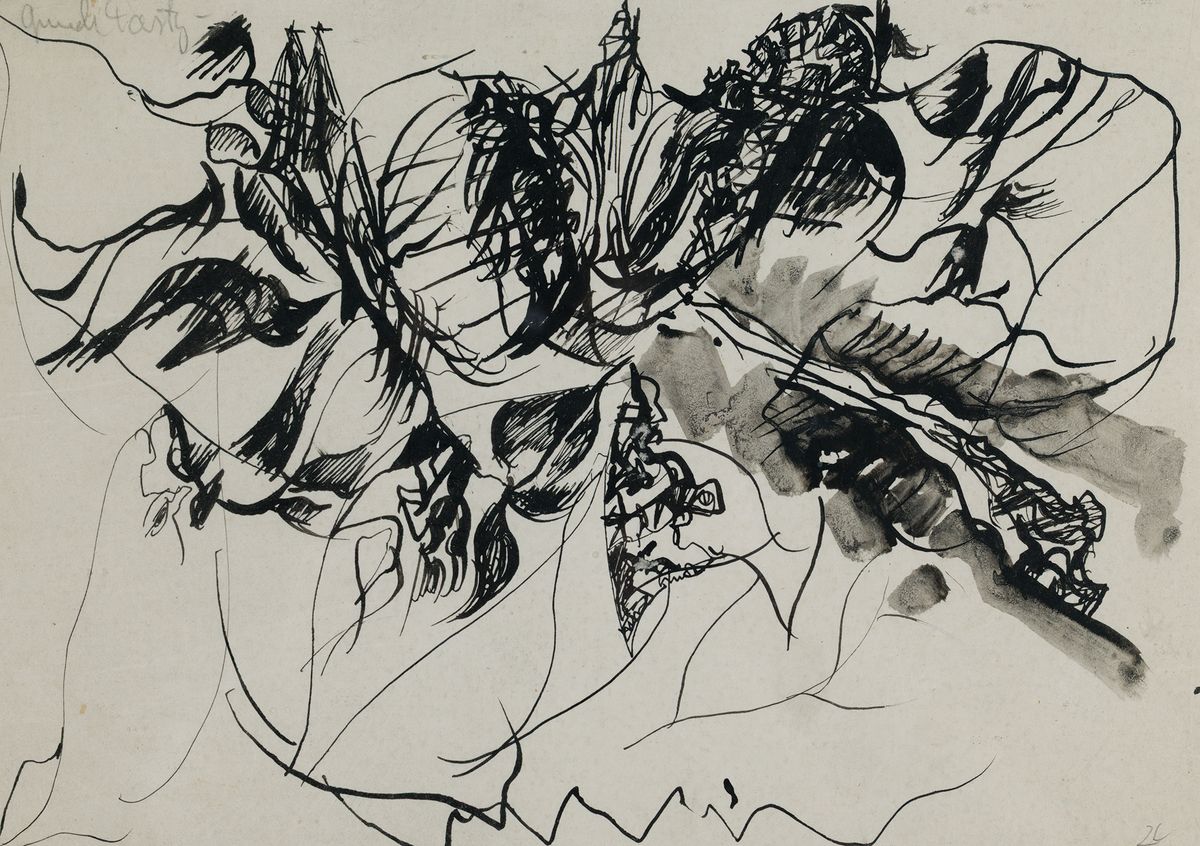 Tusz, piórko, lawowanie, papier; 21,5 x 30 cm (w świetle p-p)
