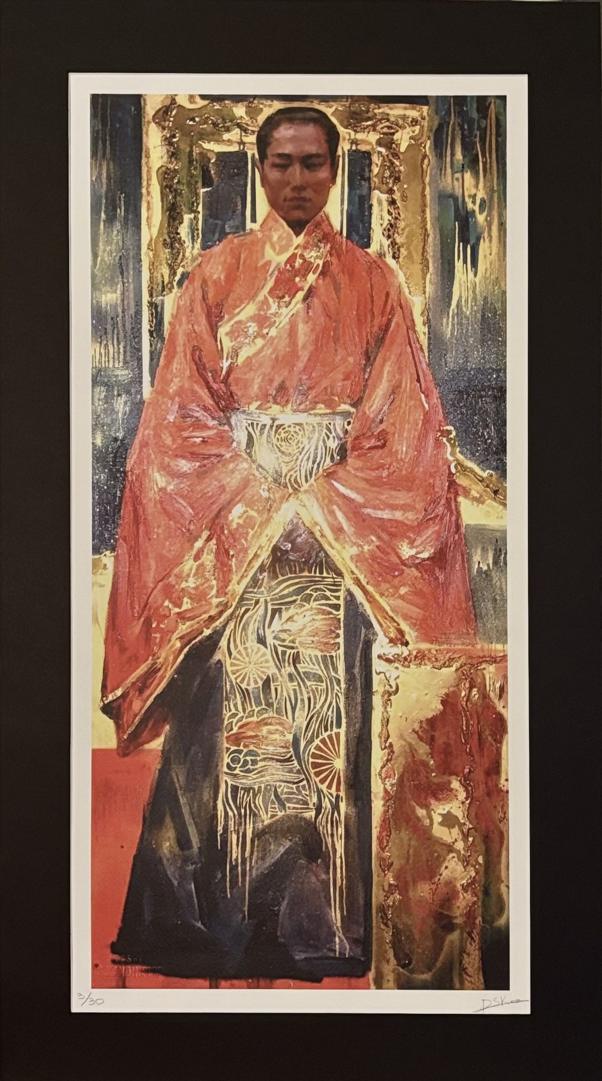 Serigrafia, papier Fabriano, 69 X 34 cm w świetle passe – partout o wymiarach: 80 x 44 cm; sygn. ołówkiem przez autorkę p.d. oraz numerowana l.d. 5/30.