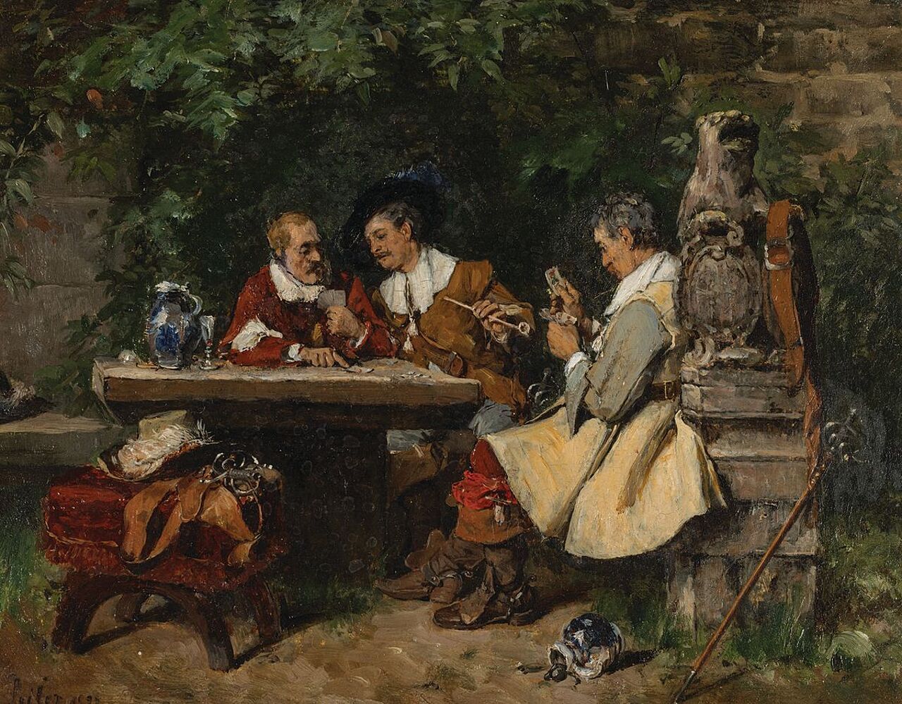 Olej, deska, 22,8 x 18,2 z 22,8 cm Sygnowany l.d.: C. Seiler 1877