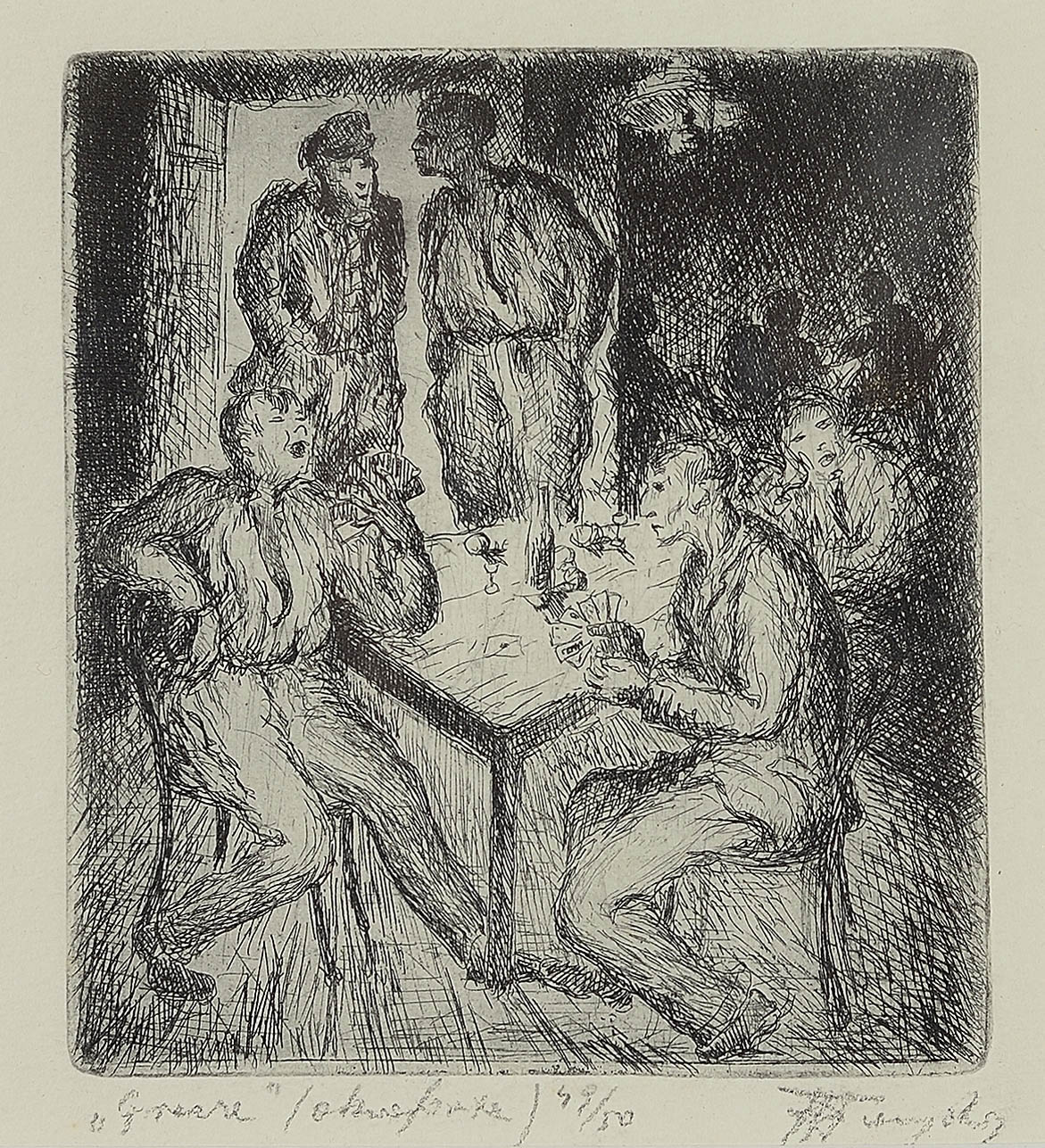 sygn. d. kredką: "Gracze" (akwaforta) 49/50 FAHayder.