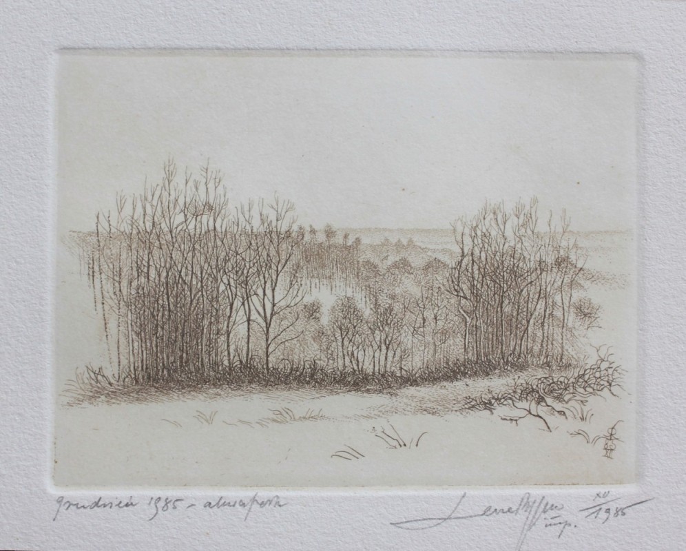 sygn. dat. p.d. LeszekRózga / imp. XII / 1985 i na płycie p.d. monogramem LR / 85 / XIIakwaforta7,4 x 10 cm