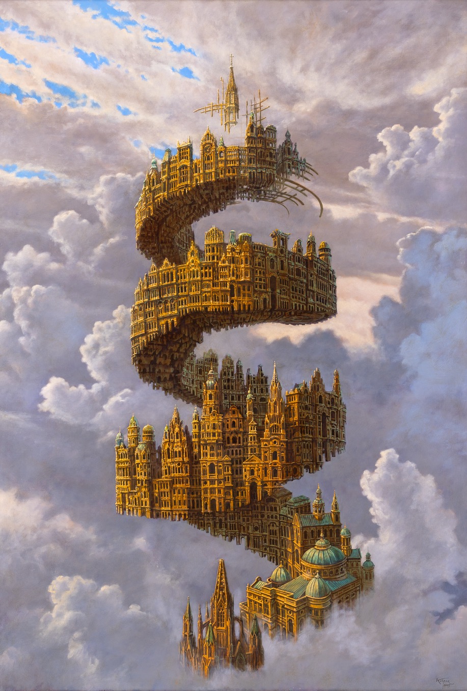 olej, płótno, 190 x 130 cm (w oprawie 210 x 149 cm),sygnowany p.d.: ‘Kołpan | 2025’ oraz opisany na odwrocie: 'MARCIN KOŁPANOWICZ | "HELISOPOLIS", 2025 | Kołpan | 2025'