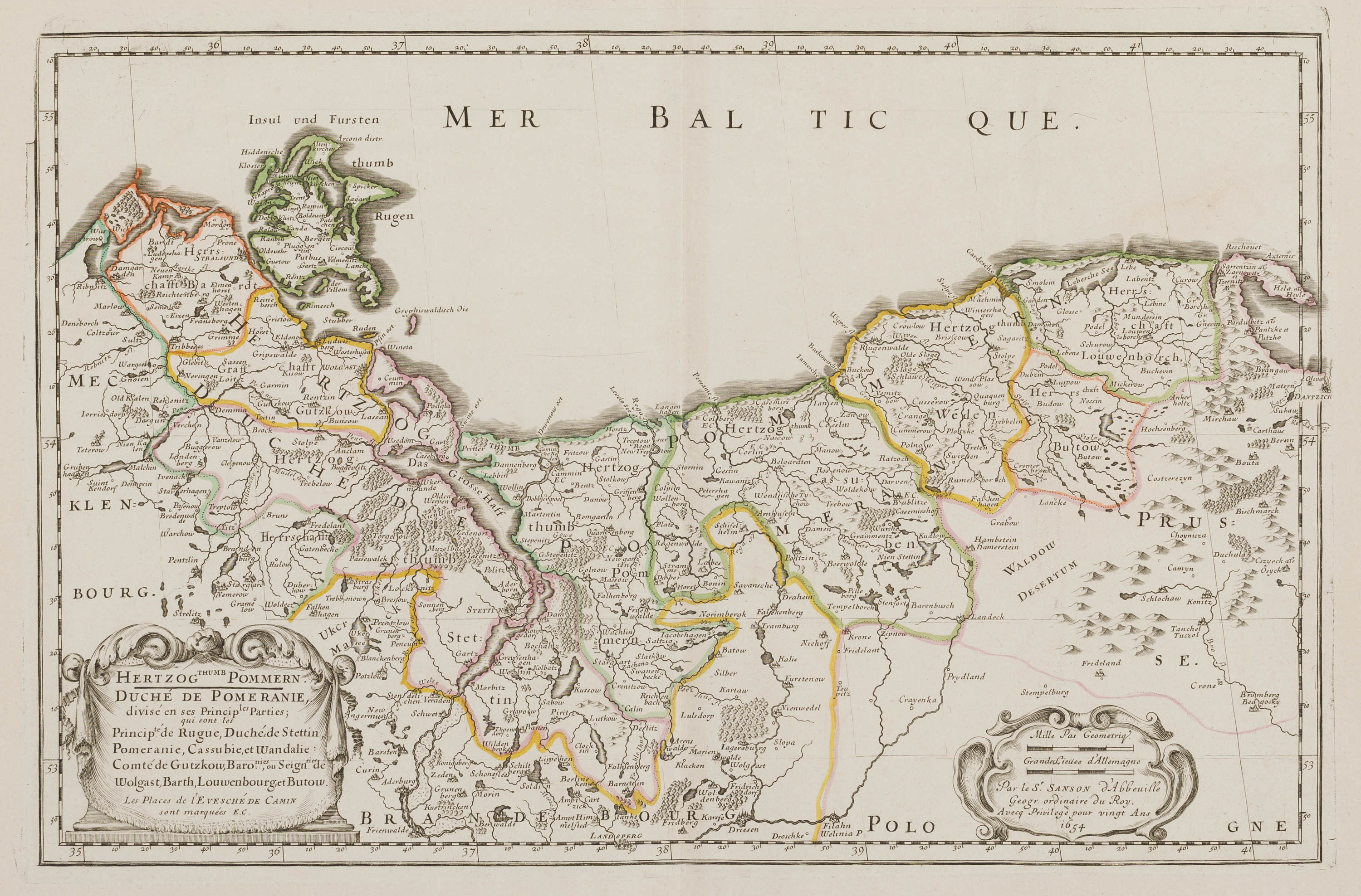 Mapa Pomorza Zachodniego, Paryż 1654miedzioryt kolorowany liniowo w epoce, 33,5 x 51,5 cmstan zachowania bardzo dobry -, niewielkie naddarcie lewego marginesu; papier z filigranami