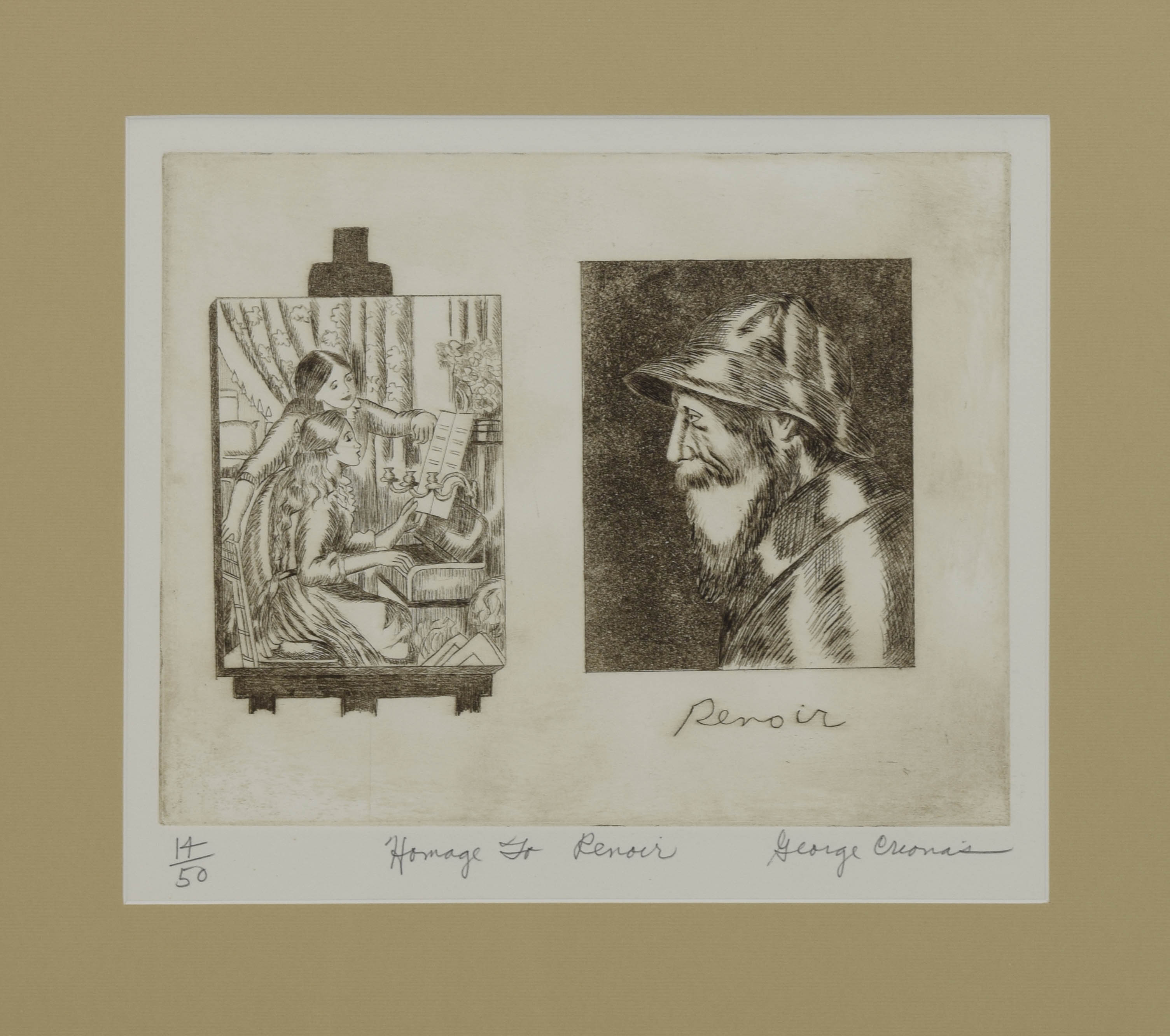 Praca w lewej części przedstawia szkic Renoira odtworzony przez Crionasa, a z prawej portret Renoira patrzącego na swoją pracę.
