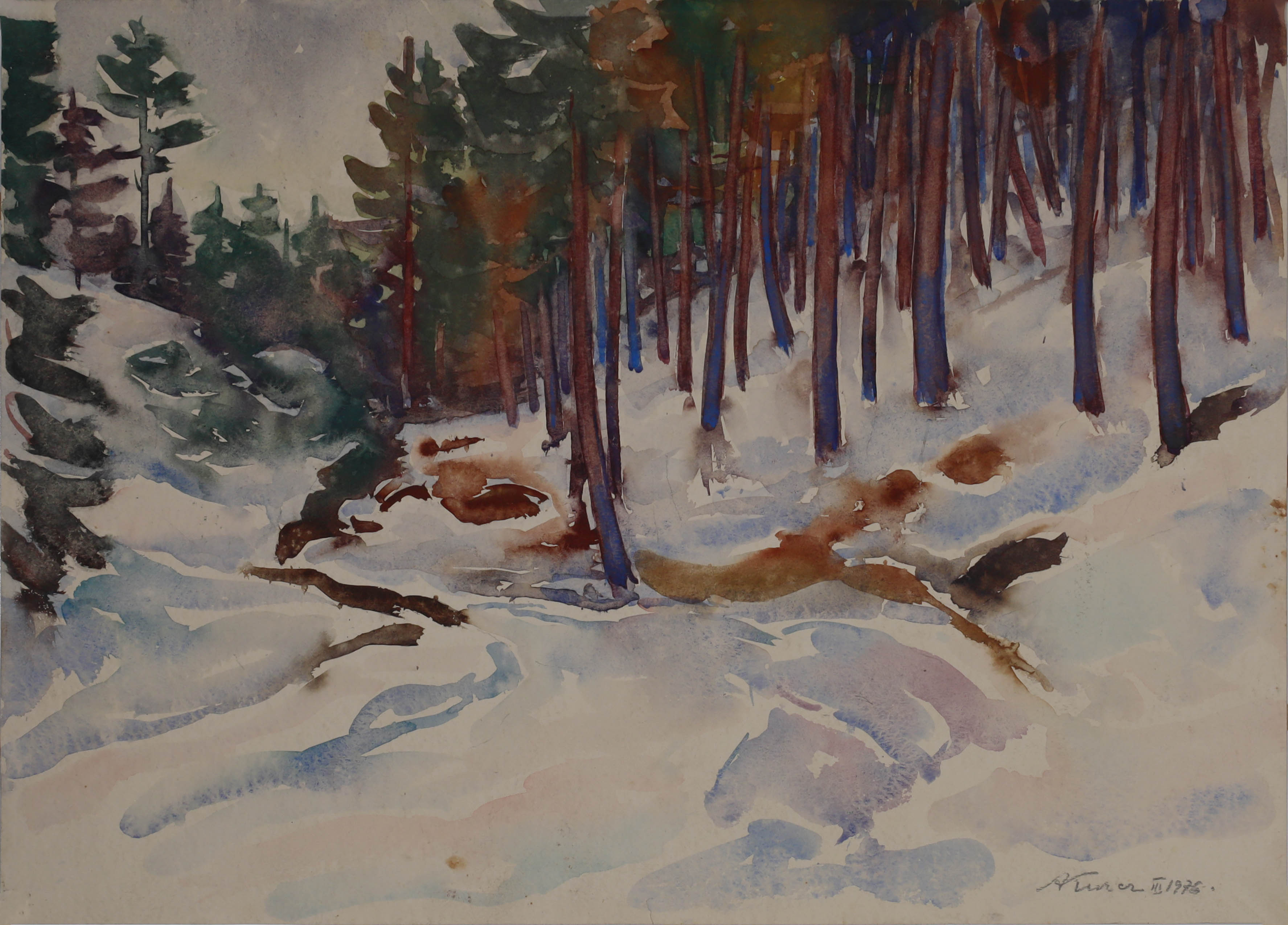 akwarela, papier; 36,5 x 50,5 cm;sygn. i datowany p.d.: ? III 1976.opisany na odwrocie: HoliczneStan zachowania: zaplamienia.