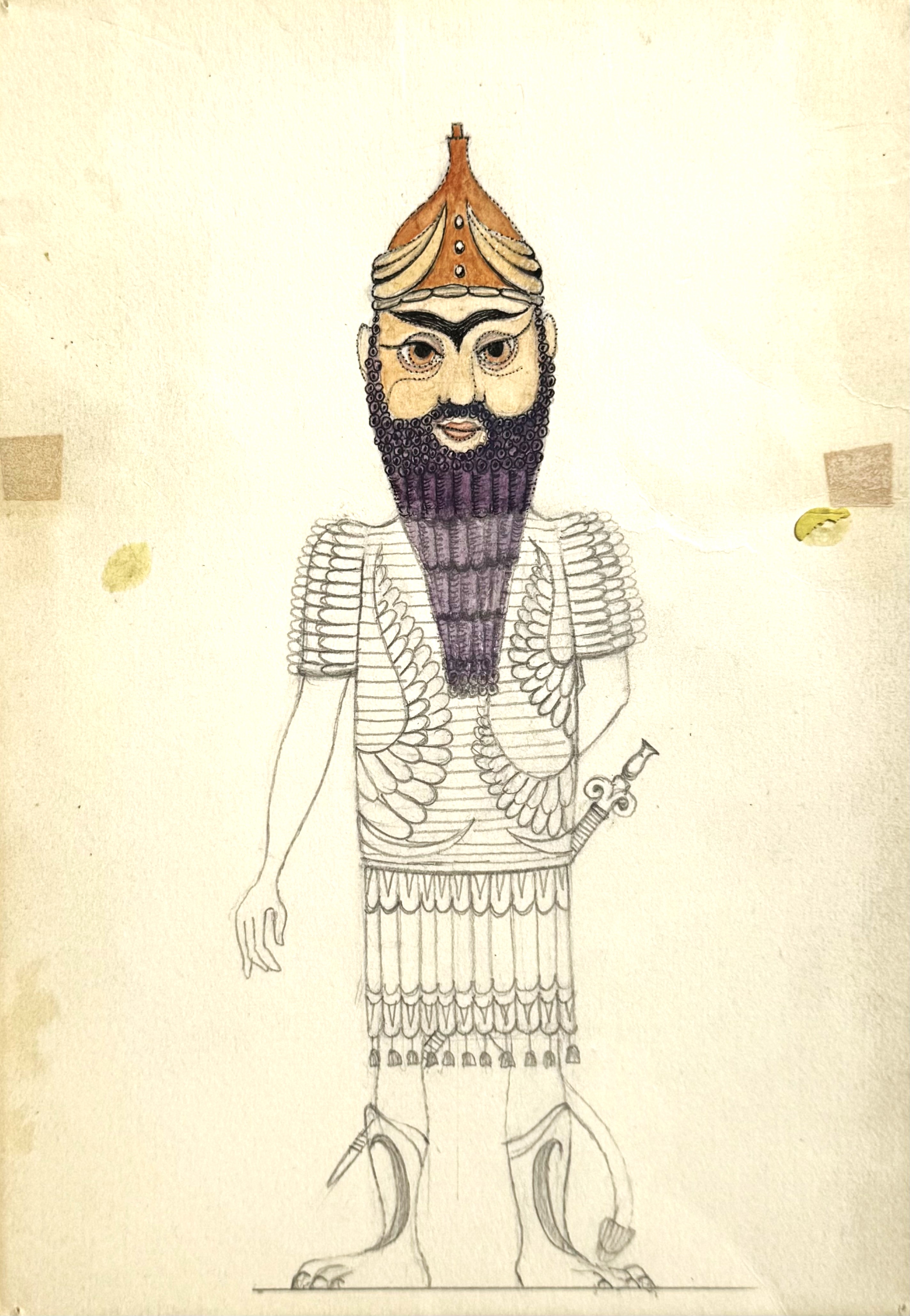 na odwrotnej stronie opis: Holofernes/ maska + kostium. Proj. do spektaklu "Wygnańcy Ewy. Salome. Judyta i Holofernes", 1975, reż. Z. Jaremowa, wg. J. Sztaudynger.